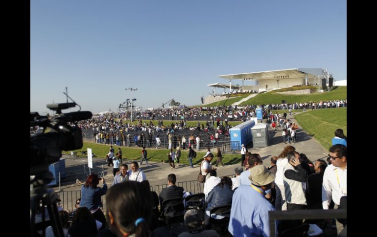 México | El ejecutivo dará seguimiento a las actividades programadas en la visita del pontífice Calderón asistirá a la misa en Parque Bicentenario El Presidente de México y su esposa, Margarita Zavala, estarán presentes en la misa solemne que oficiará el Papa Benedicto XVI Por: NTX 25 de marzo de 2012 - 08:18 hs Aspectos del Parque Bicentenario, a unos momentos de que comience la misa en este lugar. / LEÓN, GUANAJUATO (25/MAR/2012).- El Presidente Felipe Calderón Hinojosa y su esposa, Margarita Zavala, asistirán este domingo a la celebración de la misa solemne que oficiará el Papa Benedicto XVI en el Parque Bicentenario. El Ejecutivo federal dará seguimiento así a las actividades programadas en la visita pastoral del obispo de Roma, que inició el viernes con la ceremonia de bienvenida y continuó ayer con un encuentro privado entre el Papa y el mandatario. En la ciudad de León, desde la madrugada, cientos de personas se alistaron para asistir a la ceremonia de la misa dominical, para lo cual, algunas incluso acamparon en las calles cercanas al sitio, a fin de intentar alcanzar un lugar. En la celebración de la misa solemne estarán presentes cardenales y obispos de México y América Latina. Además se espera la presencia de los candidatos a la Presidencia de la República de los partidos Acción Nacional (PAN), Josefina Vázquez Mota; del Revolucionario Institucional (PRI), Enrique Peña Nieto; y del de la Revolución Democrática, Andrés Manuel López Obrador, así como representantes eclesiásticos, empresariales y políticos. La visita pastoral de Benedicto XVI concluirá mañana lunes, cuando el Presidente Calderón le dé oficialmente la despedida en el Aeropuerto Internacional de Guanajuato, desde donde el Sumo Pontífice volará hacia La Habana, Cuba, para continuar con su recorrido. Temas Felipe Calderón Papa Benedicto Estados .El Papa Benedicto XVI en México Lee También Metro CDMX: Fecha en que abrirán todas las estaciones de la Línea 1 Esta es la verdadera identidad del "Juan Gabriel" captado en París t.A.T.u anuncia concierto en México: precio de boletos y cuándo salen a la venta ¿Será obligatorio presentar la CURP biométrica para trámites escolares? Recibe las últimas noticias en tu e-mail Todo lo que necesitas saber para comenzar tu día Registrarse implica aceptar los Términos y Condiciones