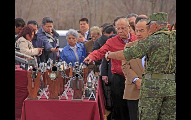 México | Miles de armas, cartuchos, cargadores, tres lanzacohetes y 15 granadas Calderón encabeza destrucción de armas en Juárez El Ejército le mostró al Presidente la incineración de 150 kilogramos de pólvora, extraída de 200 mil cartuchos Por: SUN 16 de febrero de 2012 - 18:22 hs CIUDAD JUAREZ (16/FEB/2012).- El presidente Felipe Calderón encabezó la destrucción de miles de armas, cartuchos, cargadores, tres lanzacohetes y 15 granadas de distintos calibres. En una breve ceremonia, Calderón oprimió el botón para detonar las granadas. Sonrió. Entre el 1 de diciembre de 2006 y el 30 de enero de 2012 fueron decomisadas 63 mil 641 armas largas, 44 mil 332 armas cortas, 10 millones 977 mil 467 cartuchos y 267 mil 907 cargadores, que fueron destruidos. "No tienen ningún cartucho que pueda poner en riesgo al personal", dijo el coronel Miguel Ángel Lizárraga Granados, comandante del primer batallón de Materiales de Guerra. "Esta es la matapolicías", decía el relator al mostrar armas de alto calibre, muchas de ellas hasta con pedrería preciosa o de oro, con imágenes de la virgen de Guadalupe o de plantas como la mariguana. Mostraron a Calderón la incineración de 150 kilogramos de pólvora, extraída de 200 mil cartuchos. Los hombres partían en trozos las armas lo mismo con soplete que echaban encima enormes tanquetas para aplastar algunas de ellas que se veían viejas. "Tenemos pistolas de la marca colt las cuales tienen grabados, imágenes en sus cachas, dorados, pedrería diversa y repujados en plata, imágenes de santos, de la virgen de Guadalupe, de plantas como la marihuana y animales. Subametralladoras como la UZI fabricada por industrias militares de Israel", dijo el narrador. "Escopetas, carabinas de fabricación norteamericana, igual con trabajos en madera, dorados, repujados. Fusiles de asalto, que son armas para uso exclusivo de las fuerzas armadas, AK-47 de patente rusa pero fabricados en China, Egipto, Turquía. Con figuras de animales y dorados", dijo. El mandatario estuvo acompañado de su esposa Margarita Zavala y de los secretarios de la Defensa Nacional, general Guillermo Galván; de Gobernación, Alejandro Poiré; de Seguridad Pública, Genaro García Luna, y el de la Reforma Agraria, Abelardo Escobar, y la procuradora Marisela Morales. Temas Gobierno de México Felipe Calderón Ejército Lee También Hoy No Circula lunes 13 de octubre 2025: Autos que descansan en CDMX y Edomex Clara Brugada rinde su Primer Informe de Gobierno Morelos reporta siete muertos tras lluvias de las últimas horas Liverpool: ¡Laptops en menos de 5 mil pesos que no te puedes perder! Recibe las últimas noticias en tu e-mail Todo lo que necesitas saber para comenzar tu día Registrarse implica aceptar los Términos y Condiciones