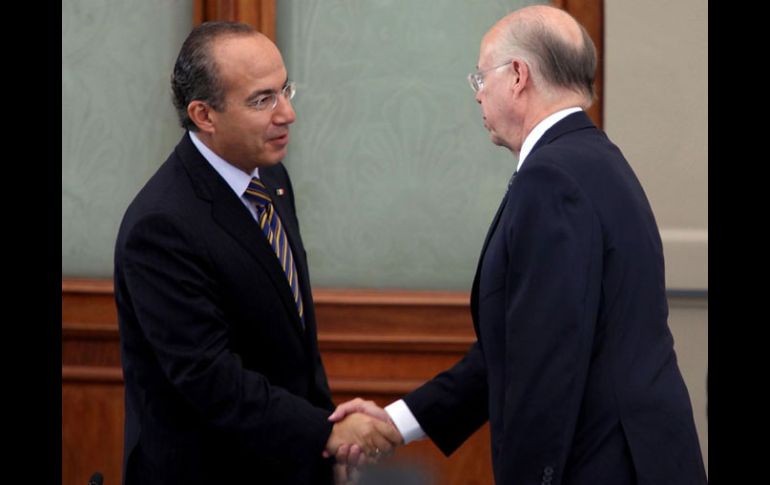 México | El Mandatario no responde al llamado para convocar a un pacto social Calderón evade propuesta de la UNAM en seguridad El Mandatario no responde al llamado del rector José Narro para convocar a un pacto social Por: EL INFORMADOR 6 de septiembre de 2011 - 03:32 hs Felipe Calderón saluda a José Narro durante el diálogo celebrado en el Castillo de Chapultepec. EL UNIVERSAL / CIUDAD DE MÉXICO (06/SEP/2011).- El Presidente Felipe Calderón revisó el documento de la Universidad Nacional Autónoma de México (UNAM) para diseñar una nueva política en materia de seguridad, y afirmó: “Algunas cosas que suenan más genéricas, más de propósito”. Además, enlistó 10 puntos que le parecieron coincidencias con la estrategia actual. Durante el diálogo celebrado en el Castillo de Chapultepec, en el que estuvo presente el rector José Narro, el Presidente no respondió al llamado del académico en torno a un plazo de un mes para convocar a un pacto social. Calderón afirmó: “Qué más quisiéramos que reducir las muertes y los lesionados, el asunto es de los cómo. Y proteger la integridad de las personas es lo que todos queremos, pero cuando hablamos de girar la estrategia para acá o para allá, creo que vamos buscándolo lo más concreto posible”. El Mandatario propuso integrar un grupo que permita depurar ideas y llegar a coincidencias. “Ya hemos expresado nuestras preocupaciones, pero creo que los consensos son mayoría, pero hagamos ese grupo y démosle la tarea de procesar sus consensos que nos permitan esbozar un documento final”. Alonso Lujambio, secretario de Educación Pública, dijo al rector que está en desacuerdo con el señalamiento de que en el tema de prevención de drogas hay desatención. Temas Gobierno de México Felipe Calderón UNAM José Narro Robles Recibe las últimas noticias en tu e-mail Todo lo que necesitas saber para comenzar tu día Registrarse implica aceptar los Términos y Condiciones