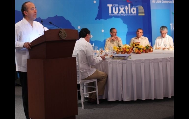 México | Los presidentes de cinco países de Mesoamérica se reúnen en Yucatán Calderón pide a mandatarios respaldo en combate al crimen Inicia la XIII Cumbre del Mecanismo de Diálogo y Concertación de Tuxtla, con la asistencia de cinco presidentes (Chile, Guatemala, Honduras, Nicaragua y República Dominicana) Por: SUN 5 de diciembre de 2011 - 11:50 hs MÉRIDA, YUCATÁN (05/DIC/2011).- El Presidente Felipe Calderón urgió a los mandatarios de Mesoamérica a robustecer la seguridad contra la delincuencia trasnacional y a pasar de una democracia electiva a una ciudadana donde las personas tengan poder de decisión. Al inaugurar la XIII Cumbre del Mecanismo de Diálogo y Concertación de Tuxtla, con la asistencia de cinco presidentes (Chile, Guatemala, Honduras, Nicaragua y República Dominicana), Calderón evocó que a 20 años de la creación de este organismo es menester su relanzamiento con nuevos bríos. Calderón convocó a robustecer la seguridad regional con base en el diálogo y corresponsabilidad contra la delincuencia organizada trasnacional, Pidió fortalecer la gobernabilidad democrática de nuestros países para transitar de una democracia de electores hacia una de ciudadanos, Debemos actualizar esquemas de cooperación para garantizar el respeto a los derechos humanos de los migrantes y su acceso a la justicia, añadió Calderón. "Proponemos relanzar el Mecanismo de Tuxtla para impulsar desarrollo económico y social, y enfrentar eficazmente los retos actuales", expuso. Los países fundadores son México, Costa Rica, El Salvador, Guatemala, Honduras y Nicaragua. En 1996 se incorporaron al mecanismo Belice y Panamá, mientras que en 2009 lo hicieron Colombia y República Dominicana. Temas Gobierno de México Felipe Calderón Yucatán Lee También Clima en Ciudad de México hoy: el pronóstico para el domingo 12 de octubre de 2025 Reformas a Ley de Amparo no limita derechos ciudadanos Festival del Pan de Muerto en CDMX: Fechas, horarios y actividades México vs Argentina: ¿Quién ganará el partido según la IA? Recibe las últimas noticias en tu e-mail Todo lo que necesitas saber para comenzar tu día Registrarse implica aceptar los Términos y Condiciones