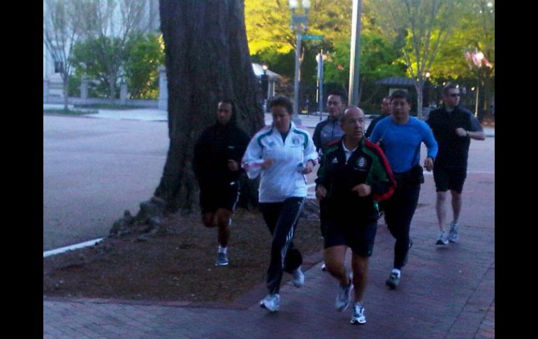 México | El mandatario se reunirá con el presidente de EU y el primer ministro de Canadá Calderón se ejercita frente a Casa Blanca El mandatario se reunirá con el presidente de EU y el primer ministro de Canadá Por: NTX 2 de abril de 2012 - 09:20 hs Al termino de la reunión viajará a la Ciudad de México en donde encabezará un homenaje al ex presidente Miguel de la Madrid. NOTIMEX / WASHINGTON, ESTADOS UNIDOS (02/ABR/2012).- El presidente Felipe Calderón salió esta mañana de lunes a correr en el parque Lafayette, acompañado de su esposa Margarita Zavala, justo enfrente de la Casa Blanca. Durante su recorrido, un grupo de jóvenes de la Universidad Autónoma de Nuevo León (UANL) se acercó a pedirle una foto y coreó: "México, México, México". "Dejen que me eche otra vueltecita", dio el Presidente a los jóvenes. El mandatario se reunirá a las 11:00 horas con el presidente de Estados Unidos, Barack Obama y el primer ministro de Canadá, Stephen Harper. Al termino de la reunión viajará a la Ciudad de México en donde encabezará a las 19:00 horas un homenaje de cuerpo presente al ex presidente Miguel de la Madrid Hurtado, quien falleció ayer. Temas Gobierno de México Felipe Calderón Giras presidenciales Lee También Reformas a Ley de Amparo no limita derechos ciudadanos Festival del Pan de Muerto en CDMX: Fechas, horarios y actividades México vs Argentina: ¿Quién ganará el partido según la IA? CDMX, con pronóstico de lluvias fuertes hoy sábado Recibe las últimas noticias en tu e-mail Todo lo que necesitas saber para comenzar tu día Registrarse implica aceptar los Términos y Condiciones