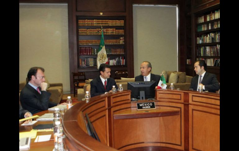 México | Peña asistió al encuentro junto con su coordinador general para la Transición Calderón y Peña Nieto abordan economía y política internacional Ambos políticos se reunieron en Los Pinos con sus equipos por la mañana, más tarde la Presidencia de la República informará sobre los puntos tratados Por: SUN 23 de octubre de 2012 - 14:22 hs .La Presidencia informará más tarde sobre los puntos tratados. ARCHIVO / CIUDAD DE MÉXICO (23/OCT/2012).- El presidente electo Enrique Peña Nieto y el presidente Felipe Calderón se reunieron por quinta ocasión en Los Pinos. Los temas que trataron fueron economía y asuntos internacionales. Peña Nieto asistió al encuentro junto con su coordinador general para la Transición, Luis Videgaray, y su vicecoordinador para Asuntos Internacionales, Emilio Lozoya Austin. Ambos políticos se reunieron en Los Pinos con sus equipos por la mañana y más tarde la Presidencia de la República informará en un comunicado sobre los puntos tratados. Ayer lunes, personal del equipo del Presidente electo estuvo en la Residencia Oficial con planos en la mano, supervisando la casa presidencial. Temas Gobierno de México Felipe Calderón Enrique Peña Nieto Lee También "La Mañanera" de Sheinbaum de hoy martes 14 de octubre de 2025 Ni para la foto hubo acuerdo La "doble cara" de la política exterior Claudia Año II: es la comunicación Recibe las últimas noticias en tu e-mail Todo lo que necesitas saber para comenzar tu día Registrarse implica aceptar los Términos y Condiciones