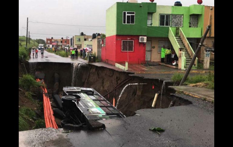 CIUDAD DE MÉXICO (07/JUL/2017).- Un camión de transporte público cayó en un socavón que se formó ante el reblandecimiento del pavimento en el fraccionamiento Oasis, en Veracruz.A través de redes sociales, vecinos difundieron un video en el que se aprecia el momento en el que cae.Además del vehículo, una casa se aprecia en riesgo de venirse a pique por el socavón que se formó.