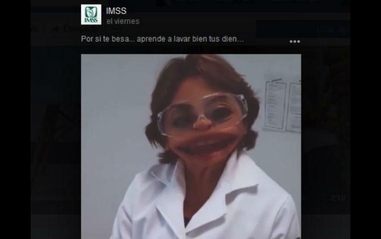 CIUDAD DE MÉXICO (28/AGO/2017).- El Instituto Mexicano del Seguro Social lanzó, a través de sus redes sociales, un tutorial para cepillarse los dientes que se ha vuelto viral.En el video, que dura un poco más de un minuto, se observa a una dentista y un paciente cuya boca ha sido aumentada. Las voces de ambos también fueron distorsionadas para sonar graciosas.El médico explica los movimientos adecuados que se deben realizar para un cepillado eficiente de los dientes en jóvenes y adultos. Además recomienda que en el caso de los niños lo mejor es cepillar de manera circular todos los dientes."Recuerden usar el hilo dental dos veces a la semana y ahora sí a sonreír por la vida", concluye la doctora.La publicación, compartida por el IMSS en Twitter y Facebook, está acompañada con la frase "Por si te besan… aprende a lavar bien tus dientes".Al momento, el video cuenta con 723 177 reproducciones, más de 10 mil reacciones y ha sido compartido más de nueve mil veces.