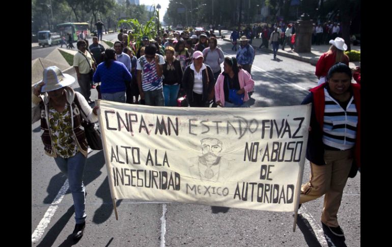 México | De acuerdo con los dirigentes, en la movilización participan 40 mil personas Campesinos entablan diálogo en Gobernación De acuerdo con los dirigentes, en la movilización participan 40 mil integrantes de diferentes organizaciones campesinas Por: SUN 23 de julio de 2014 - 13:52 hs CIUDAD DE MÉXICO (23/JUL/2014).- Integrantes de 45 organizaciones campesinas, que marcharon desde el Ángel de la Independencia, integraron una comisión de representantes para entablar un diálogo con autoridades de la Secretaría de Gobernación. La finalidad del diálogo es pedir que se inicie una mesa de negociación sobre la reforma al campo, los derechos humanos de pueblos y comunidades indígenas, así como la reforma energética. De acuerdo con los dirigentes, en la movilización participan 40 mil integrantes de diferentes organizaciones campesinas y en otras partes de la República también llevan a cabo protestas en plazas, carreteras y dependencias del Gobierno federal. Al grito de “¡se ve se siente, el campo está presente!”, los manifestantes esperan a que salga la comisión. La Secretaría de Seguridad Pública del Distrito Federal (SSP-DF) informó que la retaguardia permanecía sobre Paseo de la Reforma, pasando la avenida Insurgentes. Hasta las 14:00 horas sólo se había registrado un incidente. Fue a la altura de la Glorieta del Caballito donde integrantes de Unión Campesina Democrática ahuyentaron a supuestos dirigentes estatales de dicha organización que no son reconocidos. Temas Reforma Energética Segob Estados Manifestaciones en la Cd. de México Recibe las últimas noticias en tu e-mail Todo lo que necesitas saber para comenzar tu día Registrarse implica aceptar los Términos y Condiciones