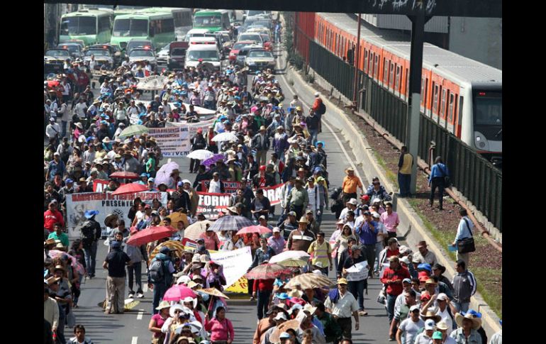 México | Profesores de diversos estados de la república se unieron a la manifestación Caos en el DF por marcha de maestros Esta mañana, el titular de la SSPDF, Manuel Mondragón y Kalb, precisó en un programa radiofónico que desde las 06:00 horas se estableció un operativo en el que participan 17 mil 300 elementos Por: NTX 15 de marzo de 2012 - 11:46 hs specto de la manifestación de maestros de la Coordinadora Nacional de Trabajadores de la Educación. NOTIMEX / CIUDAD DE MÉXICO (15/MAR/2012).- La marcha de maestros de la Coordinadora Nacional de Trabajadores de la Educación (CNTE) rumbo al Zócalo provoca caos vial, tanto en las calzada Ignacio Zaragoza, Tlalpan y Paseo de la Reforma. Los mentores provenientes de diversas entidades del país fueron citados en el Auditorio Nacional, en el monumento El Caballito en calzada Zaragoza, y en la estación Taxqueña del Metro, de donde partieron rumbo al Zócalo. De acuerdo con el Orientador Vial de la Secretaría de Seguridad Pública del Distrito Federal (SSPDF) los inconformes avanzan por la Calzada de Tlalpan con dirección al norte. Como alternativa recomienda el Eje Central. Mientras, Paseo de la Reforma continúa afectada por la marcha de los maestros, quienes seguirán hasta Avenida Juárez, luego seguirán hacia el eje Central y 5 de Mayo; por lo que las alternativas para esta ruta son las avenidas Chapultepec, Constituyentes, Circuito Interior y el Anillo Periférico. En tanto, la circulación en Ignacio Zaragoza ya fue liberada a la altura del Circuito Interior, luego del paso de manifestantes, quienes avanzan por Fray Servando para llegar a Izazaga y entrar al Zócalo. Esta mañana, el titular de la SSPDF, Manuel Mondragón y Kalb, precisó en un programa radiofónico que desde las 06:00 horas se estableció un operativo en el que participan 17 mil 300 elementos, 600 unidades y cuatro helicópteros. Temas Estados Distrito Federal Manifestaciones en la Cd. de México Lee También Organismo internacional prevé tensión comercial a nivel global en 2026 Raymond toca tierra como ciclón post-tropical Clima en Ciudad de México hoy: el pronóstico para el domingo 12 de octubre de 2025 Reformas a Ley de Amparo no limita derechos ciudadanos Recibe las últimas noticias en tu e-mail Todo lo que necesitas saber para comenzar tu día Registrarse implica aceptar los Términos y Condiciones