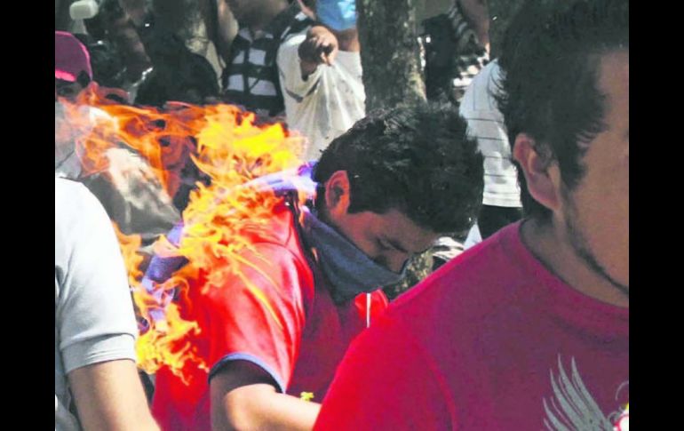 México | Disputan predio en Santa Cruz Xoxocotlán Choque contra policías en Oaxaca 20 policías resultaron heridos durante el enfrentamiento entre autoridades y habitantes del municipio que disputan el derechos sobre un predio Por: EL INFORMADOR 27 de diciembre de 2012 - 03:20 hs Un grupo de vecinos intentó desalojar a los policías lanzándoles piedras, palos, bombas molotov y cohetones.XINHUA / XOXOCOTLÁN, OAXACA (27/DIC/2012).- Unos 36 heridos (20 policías) y seis detenidos es el saldo preliminar de una serie de enfrentamientos entre agentes municipales y habitantes del fraccionamiento Riveras del Río Atoyac, de Santa Cruz Xoxocotlán, que disputan el derecho sobre un predio de 600 metros cuadrados, donde se construirá un cuartel. Un grupo de vecinos intentó desalojarlos lanzándoles piedras, palos, bombas molotov y cohetones. Los uniformados respondió con gases lacrimógenos. Temas Estados Oaxaca Recibe las últimas noticias en tu e-mail Todo lo que necesitas saber para comenzar tu día Registrarse implica aceptar los Términos y Condiciones
