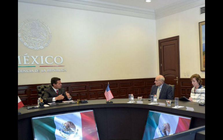 CIUDAD DE MÉXICO (05/JUL/2017).- Un poco más de una hora duró el encuentro entre el secretario de Seguridad Interna de los Estados Unidos, John Kelly, con el Presidente, Enrique Peña Nieto, en la Residencia Oficial de Los Pinos.El convoy que transportaba al funcionario estadounidense salió de la casa presidencial a las 14:07 horas de la tarde y no hubo declaraciones ni mensaje a medios.El presidente de la República y el secretario de Seguridad Interna de los Estados Unidos acordaron continuar trabajando juntos para combatir el crimen organizado trasnacional, a partir del enfoque de corresponsabilidad que ambas naciones han reconocido. Entre los temas abordados se encuentran: la seguridad, migración, tráfico de armas y narcotráfico.El encuentro fue de carácter de privado y se esperaba que posteriormente el Presidente Peña se trasladara al Hangar Presidencial para despegar y viajar a una gira internacional a Francia y Hamburgo, Alemania, a la reunión del G-20 dónde se entrevistará con el presidente de Estados Unidos, Donald Trump.El Titular del Ejecutivo Federal subrayó la importancia de continuar trabajando con Estados Unidos para seguir impulsando medidas que promuevan el flujo eficiente y ordenado de bienes y personas a lo largo de la frontera entre nuestros dos países.En el encuentro, el Presidente se refirió a la Conferencia sobre Prosperidad y Seguridad en Centroamérica que se llevó a cabo los pasados 15 y 16 de junio, en Miami, Florida como un ejemplo exitoso de los esfuerzos conjuntos para enfrentar los retos y aprovechar las oportunidades de la región en materia económica, migratoria y de seguridad.Además el Mandatario reconoció la decisión del gobierno de Estados Unidos de mantener el Programa de Acción Diferida para los Llegados en la Infancia (DACA, por sus siglas en inglés) y reiteró el compromiso del gobierno de México con la protección de los derechos de los mexicanos en Estados Unidos.Durante el encuentro de trabajo, el secretario Kelly estuvo acompañado por la embajadora de Estados Unidos en México, Roberta S. Jacobson; por el director general de la Agencia Central de Investigaciones (CIA, por sus siglas en inglés), Michael Richard Pompeo, y por el senador por el estado de Arkansas, Tom Cotton.Jonh Kelly tendrá una reunión en la Secretaría de Relaciones Exteriores (SRE) a las 15:00 horas y a las 16:30 horas un encuentro privado con el titular de la Procuraduría General de la República (PGR), Raúl Cervantes.