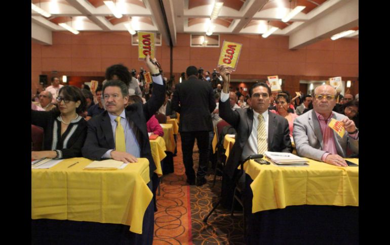 México | Los perredistas ponen en consideración la propuesta de su dirigente Consejo Nacional del PRD vota relevo de Navarrete Tras un receso de 12 horas, los perredistas ponen en consideración la propuesta de su dirigente Por: SUN 8 de agosto de 2015 - 14:55 hs CIUDAD DE MÉXICO (08/AGO/2015).- Tras casi 12 horas de receso, el Consejo Nacional del PRD reanudó su sesión extraordinaria para poner a consideración una propuesta para transformar al perredismo que incluye el relevo de toda la dirigencia nacional, así como direcciones estatales con bajos resultados en las elecciones pasadas. Alrededor de la medianoche, después de que Carlos Navarrete hiciera oficial su petición de relevo a su cargo como presidente nacional del PRD, se acordó un receso del quinto pleno extraordinario del noveno Consejo Nacional del partido. Este sábado se reanudarán los debates y posteriormente se votará el relevo de la dirigencia nacional y trazarán la ruta para sustituir al actual presidente, el secretario general (todavía en manos de Héctor Bautista) y 20 integrantes del Comité Ejecutivo Nacional. Asimismo, está pendiente la aprobación de la Política de Alianzas del Sol Azteca para las entidades federativas con proceso electoral local 2015-2016 (Aguascalientes, Baja California, Chihuahua, Durango, Hidalgo, Oaxaca, Puebla, Quintana Roo, Sinaloa, Tamaulipas, Tlaxcala, Veracruz y Zacatecas). En la sesión también se dará a conocer un resolutivo mediante el cual se ordena al Comité Ejecutivo Nacional, convocar a los grupos parlamentarios, en la Cámara de Senadores y en la Cámara de Diputados, a elegir a sus Coordinadores Generales a través de la Comisión Electoral. Además, se elegirán a os integrantes de los Órganos del partido, la aprobación de la Convocatoria para la realización del XIV Congreso Nacional Extraordinario, el informe financiero, entre otros temas. Temas PRD Política Carlos Navarrete Partidos políticos Recibe las últimas noticias en tu e-mail Todo lo que necesitas saber para comenzar tu día Registrarse implica aceptar los Términos y Condiciones