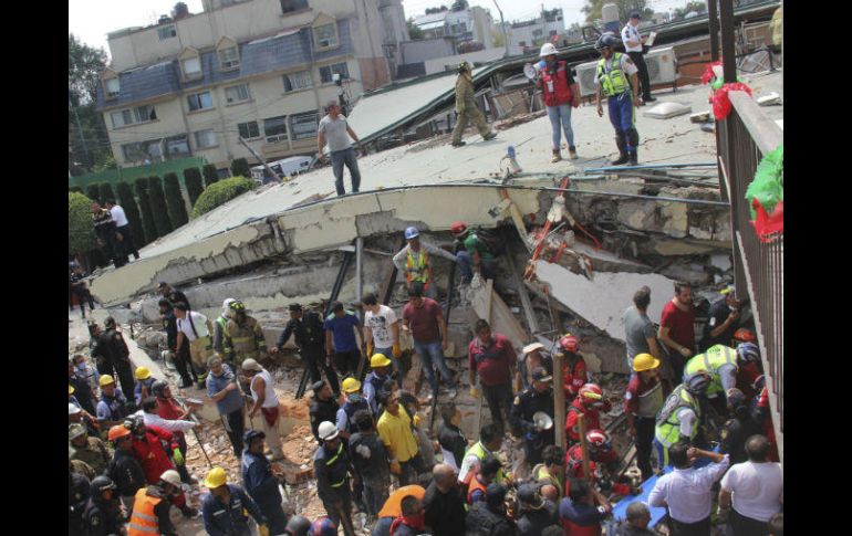 CIUDAD DE MÉXICO (20/SEP/2017).- Los socorristas intentaban rescatar el madrugada del miércoles a una maestra y dos niños atrapados bajo los escombros de una escuela de la capital mexicana destruida por el terremoto del martes, en la que perecieron al menos 25 menores, informaron las autoridades."Tenemos 30 muertos, de los cuales cinco son adultos y 25 niños. Tenemos 11 niños rescatados y el número de personas atrapadas oscila entre 30 y 40" en la escuela Enrique Rébsamen, dijo a la cadena Televisa José Luis Vergara, oficial mayor de la Armada, quien coordina el rescate.Vergara detalló que los socorristas lograron establecer comunicación con maestra atrapada, quien está con un niño, y que en otro punto de los escombros pudieron contactar con vida a otro menor en esta escuela del extremo sur de la capital.Sin embargo, la estructura de la escuela tres pisos, que quedó reducida a uno, estaba a punto de colapsar, lo que complicaba las tareas de rescate."Se vino una nube de polvo cuando se colapsó una parte del edificio totalmente. Nos tuvimos que resguardar en nuestros salones hasta que pasara el temblor", relató a Televisa María del Pilar Martí, profesora de la escuela.La mujer cubría parciamente su rostro con un tapabocas, estaba llena de polvo pues junto con otros maestros, rescatistas, militares y voluntarios civiles llevaba horas removiendo escombros con sus manos en busca de sobrevivientes.Explicó que los alumnos de primaria tenían entre siete y ocho años, mientras que los de secundaria entre 12 y 13 años.Frente a los escombros del instituto, rodeado de cientos de rescatistas y militares, se encontraban padres que desesperados intentaban tener noticias de sus hijos."Es el lugar donde tenemos el mayor número de pequeños que han perdido la vida", dijo a la cadena Televisa Luis Felipe Puente, director general de Protección Civil.El presidente Enrique Peña Nieto acudió por la noche al lugar y conversó con los rescatistas."Algunos (niños) eventualmente podrían estar con vida y otros desconocemos en qué condición se encuentran", dijo Peña Nieto a Televisa en la madrugada.El sismo, que dejó al menos 248 muertos, ocurrió a las 13:14 locales), cuando aún estaban en actividades numerosas escuelas.