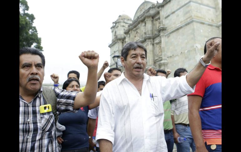 Con consignas en contra del gobierno y la reforma educativa, los maestros salieron de la fuente de las siete regiones con dirección al zócalo de Oaxaca en donde se concentran para definir las siguientes acciones a lo largo del día.Rubén Núñez anunció ayer sábado que el magisterio se movilizará en toda la entidad para frenar las votaciones en los 570 municipios; además de actividades de protesta en los 11 distritos electorales del Instituto Nacional Electoral (INE).Durante la manifestación, los maestros exigen la salida de los militares de la entidad, así como la presentación con vida de los 43 normalistas de Ayotzinapa, Guerrero."Estamos ante un retroceso histórico, hoy vemos como el poder están atropellando los derechos sociales que tenemos como pueblo", indican los docentes.Por la mañana, el consejero del Instituto Nacional Electoral en Oaxaca, Roberto Heycher Cardiel Soto, hizo un llamado a los ciudadanos a salir a votar.