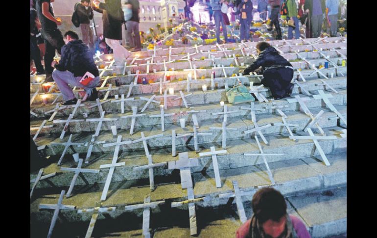 México | Lucha por la dignidad Cruces y ofrendas en honor a víctimas del narco El Movimiento por la Paz, encabezado por Javier Sicilia, dedica todo un día a los cerca de 50 mil fallecidos registrados durante el sexenio Por: EL INFORMADOR 1 de noviembre de 2011 - 01:27 hs Familiares de las víctimas de la violencia homenajearon a éstas en el Ángel de la Independencia. AFP / CIUDAD DE MÉXICO (01/NOV/2011).- Como un “reclamo de los muertos hacia el Estado y hacia los criminales”, el Movimiento por la Paz, Justicia y Dignidad, que encabeza el poeta Javier Sicilia, comenzó la colocación de ofrendas en el Ángel de la Independencia. La convocatoria para recordar a las cerca de 50 mil personas fallecidas en la guerra contra el crimen busca “hacer que las víctimas sean visibles”. En punto de las 18:00 horas, familiares de personas asesinadas colocaron alrededor del monumento flores, veladoras y cruces con el nombre de sus seres queridos para iniciar una procesión en silencio que durará 24 horas. Algunos integrantes de este Movimiento por la Paz también hacen ayuno, entre ellos Julián LeBarón, miembro de la comunidad menonita, quien sufrió la pérdida de su hermano. LeBarón dijo que el venir al monumento y colocar una ofrenda de muertos significa una oportunidad de proclamar la dignidad de quienes se han ido y llamó a que se haga justicia. Dijo que este es un problema que tienen que resolver los propios ciudadanos y no sólo con el Ejército. “Sentimos que no nos están escuchando y la violencia cada día crece”. Miles de cruces de madera y de papel fueron colocadas en el Ángel, acompañadas por veladoras. De acuerdo con Javier Sicilia, “los muertos están aquí, y nosotros somos las voces de ellos, para reclamar justicia, paz y un alto a la violencia”. El poeta dijo que este memorial es un reclamo al Gobierno federal y a los criminales. — ¿Qué decirle a los criminales en esta noche de muertos? — Que estamos hasta la madre de ellos y que no vamos a permitir que humillen nuestra dignidad. Aquí estamos en el Ángel de la Independencia y no permitiremos que las comisiones, el Gobierno y la invisibilidad de los criminales nos arrebaten esta independencia y dignidad. El poeta consideró que la noche es dolorosa, porque se conmemora a los 50 mil muertos de esta guerra, visibilizado, y presentados como testigos del dolor, la impunidad y la inseguridad. La noche, agregó, es un llamado a la paz y a la justicia; es también un llamado a los delincuentes para que no sigan dañando al pueblo de México. — ¿Cuál es su sentimiento en este Día de Muertos, cómo familiar de una víctima del crimen? —Es un sentimiento doloroso, pero también es un sentimiento de dignidad, de la conciencia tranquila, porque hemos luchado para que se haga justicia. Los que estamos aquí somos las voces de los muertos. Reconoció que en el país aún hace falta la capacidad para unirse y poner encima de las ideologías y agendas particulares la dignidad humana. Al preguntarle sobre la reunión del Consejo Nacional de Seguridad que ayer encabezó el Presidente Felipe Calderón, el poeta dijo que es importante ponerle nombre a los muertos y que el Estado haga un memorial para ellos. El representante del Movimiento por la Paz comentó: “De qué sirven las cifras y que atrapen a capos del narcotráfico, si el país no se pacífica, no encuentra su justicia y su dignidad”. Pese a que su presencia mediática no es la misma que cuando comenzó el movimiento, Javier Sicilia y sus allegados no han estado ausentes. Desde que su hijo Juan Francisco murió en marzo a manos del crimen, el poeta ha encabezado varias protestas; incluso, ha llegado hasta Ciudad Juárez, una de las ciudades más violentas del país, y al Sur, en donde los migrantes sufren de secuestros, violaciones, abusos, extorsiones y otros males ocasionados por la delincuencia organizada y algunas autoridades. FICHA TÉCNICAFestejo tradicional Los mexicanos han practicado históricamente el culto a los muertos en la intimidad, pero fue poco después de la revolución en el siglo XX, que la generación de artistas como Diego Rivera y Frida Kalho, la llenó de color y la convirtió en una celebración pública. Los altares con las ofrendas a los muertos se arman también en museos, centros comerciales y edificios públicos. La UNAM instala una de las más grandes y creativas. Este año la dedica al escritor argentino Jorge Luis Borges. Conforme la violencia ha aumentado, dejando casi 50 mil muertos desde diciembre de 2006, las celebraciones han tomado también un cariz de reclamo. Segunda jornadaCaravana de madres encuentra indocumentados, pero no a sus hijosTENOSIQUE.- Aunque no localizaron a alguno de sus hijos, el grupo de madres centroamericanas que busca a migrantes desaparecidos encontró a indocumentados encarcelados en Tenosique, Tabasco, con hasta cuatro años sin saber de sus familiares al carecer de medios para comunicarse. Las mujeres tomaron los datos de los encarcelados, pues servirán como correo comunitario cuando retornen a sus países, donde buscarán a las familias para darles la noticia sobre el paradero de los hijos. En su segundo día en México, de 17 jornadas en que recorrerá nueve estados del país, la Caravana de Madres Buscando a sus Hijos Desaparecidos en Tránsito acudió al reclusorio de Tenosique para indagar sobre la existencia de algunos de sus parientes. De entre los 10 reos —dos de ellos mujeres— de origen centroamericano, encarcelados por diversos delitos en la penitenciaría estatal, ninguno se trataba de los hijos que buscan. Fray Tomás González Castillo, director de la Casa del Migrante La 72, quien se sumó a la logística de la Caravana, explicó que los migrantes presos no han podido comunicarse a su tierra natal, pues además de carecer de los medios, tampoco tienen los números telefónicos de sus familiares. A estos migrantes, cuando fueron detenidos, les quitaron todas sus per