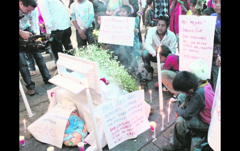 México | Según el padre del menor, el bebé nació un mes antes de tiempo, Cuerpo de bebé es velado en un plantón de triquis Según el padre del menor, el bebé nació un mes antes de tiempo, en el desalojo del palacio de gobierno, del 23 de diciembre Por: EL INFORMADOR 29 de diciembre de 2012 - 00:14 hs El cuerpo de un bebé fue velado en el plantón de los indígenas triquis desplazados de San Juan y San Miguel Copala. EL UNIVERSAL / OAXACA (29/DIC/2012).- El cuerpo de un bebé fue velado en el plantón de los indígenas triquis desplazados de San Juan y San Miguel Copala, ubicado en la calle Flores Magón y las Casas. El niño falleció ayer en el Hospital Civil “Doctor Aurelio Valdivieso”, su estado físico presentaba gravidez, informó el padre del bebé, Lázaro Hernández. Explicó que nació un mes antes de tiempo, en el momento del desalojo del palacio de gobierno, del 23 de diciembre. La líder de los desplazados de San Juan Copala, Mariana Flores López, dijo que en el plantón hay otras cuatro mujeres embarazadas. Temas Estados Oaxaca Lee También ¿Bad Bunny fuera del Super Bowl? Este sería el show alternativo Poza Rica, inundado por desbordamiento del río Cazones Bad Bunny permanece sentado durante "God Bless America" y enciende las redes Lista actualizada de selecciones que ya clasificaron al Mundial 2026 Recibe las últimas noticias en tu e-mail Todo lo que necesitas saber para comenzar tu día Registrarse implica aceptar los Términos y Condiciones