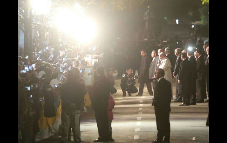 México | El Pontífice ofrece un mensaje a los feligreses reunidos fuera de la sede De nuevo, el Papa sale de Nunciatura a rezar con fieles El Pontífice ofrece un mensaje a los feligreses reunidos fuera de la sede por segunda noche Por: SUN 13 de febrero de 2016 - 21:13 hs CIUDAD DE MÉXICO (13/FEB/2016).- Por segunda noche y otra vez fuera de protocolo, el Papa Francisco salió de la Nunciatura para saludar a los fieles apostados detrás de las vallas instaladas en la calle de Juan Pablo II, a quienes pidió rezar por él. En su breve mensaje ofrecido a los presentes, Francisco pidió a la gente reunida reflexionar por los más necesitados. "Todos juntos en silencia ahora, vamos a rezarle primero a la Virgen" dijo, y acompañado de las personas que lo esperaban fuera de la Nunciatura rezó un ave María. "Alguno de ustedes tiene un problema en el corazón, no lo digan, pero piénsenlos. Vamos a ofrecer a la Virgen para que meta mano ella y arregle. La Virgen es mamá, es buena. Algunos dicen que no es suegra. Qué bueno. Ella quiere meter su mano, su corazón, en los problemas que nosotros tenemos. "También los amigos nuestros tienen problema y nosotros los sabemos no porque seamos adivinos, sino porque somos chismosos, pero pensemos también en los problemas de los amigos. "En silencio cada uno piensa qué problema tiene; piensen en los problemas que tienen sus amigos. Y después piensen en alguna persona que no conocen y debe tener algún problema. Pónganle el nombre que quieran", pidió a los fieles. "Le vamos a pedir a Dios que por medio de la Virgen tome nuestros problemas, el problema de nuestros amigos y el problema de esa persona que no conocemos y nos bendiga a todos", dijo y acto seguido bendijo a los fieles. Antes de regresar a la Nunciatura, volvió a pedir que rezaran por él. Sigue la cobertura especial de la visita del Papa a México en este micrositio Temas Iglesia Católica Ciudad de México Papa Francisco El Papa Francisco en México Papa - Detalles Recibe las últimas noticias en tu e-mail Todo lo que necesitas saber para comenzar tu día Registrarse implica aceptar los Términos y Condiciones