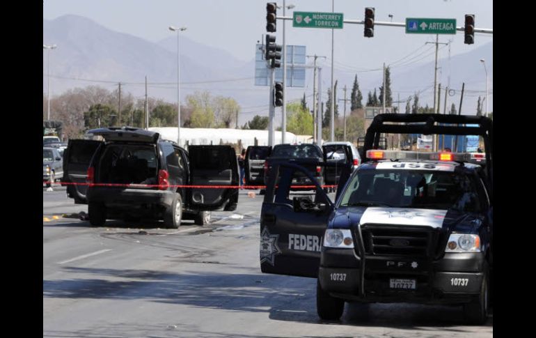 México | Varios ataques se registran en las principales avenidas de Saltillo Dejan siete muertos enfrentamientos en Coahuila Varios ataques se registran en las principales avenidas de Saltillo Por: EFE 4 de marzo de 2011 - 17:34 hs Elementos de las policías estatal y federal resguardan el sitio donde se dio uno de los enfrentamientos. EL UNIVERSAL / MONTERREY, NUEVO LEÓN (04/MAR/2011).- Mueren siete personas y otras siete resultan heridas en varios enfrentamientos registrados hoy entre presuntos sicarios y uniformados en Saltillo, capital de Coahuila, informaron fuentes oficiales. Por los enfrentamientos las principales avenidas de la ciudad fueron cerradas al paso de vehículos, lo que ocasionó caos vial en la capital de Coahuila, un estado que es escenario de una guerra entre los cárteles de las drogas de Los Zetas y el Golfo, antes aliados y hoy acérrimos enemigos. La Fiscalía de Coahuila informó que los enfrentamientos iniciaron desde la mañana de este viernes cuando chocaron delincuentes y agentes policiales, en tiroteos que se extendieron por varias calles. Un comunicado de la Fiscalía precisa que en un primer choque a tiros perdieron la vida dos delincuentes y cuatro policías resultaron lesionados. Minutos más tarde en Ramos Arizpe, que pertenece a la zona metropolitana de Saltillo, delincuentes a bordo de varios vehículos interceptaron a un agente de la Policía Investigadora y lo mataron "cobardemente", agrega el comunicado. En otro choque, tres sicarios y una mujer atacada por los delincuentes murieron, y tres agentes resultaron lesionados. En los enfrentamientos los delincuentes detonaron granadas de fragmentación y ante esos hechos la Fiscalía de Coahuila ordenó el desalojo de su personal en las oficinas del centro metropolitano y de la delegación sureste. Directores de varias escuelas ordenaron que los alumnos permanecieran en sus salones de clase para evitar que fueran alcanzados por las balas. Medios locales informaron a través de sus portales en Internet que los tiroteos dejaron al menos media docena de civiles heridos, lo cual aún no ha sido confirmado por las autoridades. Temas Crimen Organizado Agresiones a policías Coahuila Lee También ¿Qué representa el amparo de Bermúdez Requena para la FGR? Falta muchísimo, pero vamos bien Hay vínculos “claros” entre Bermúdez y la delincuencia organizada Cae un integrante de célula delictiva de “Los Chapitos” Recibe las últimas noticias en tu e-mail Todo lo que necesitas saber para comenzar tu día Registrarse implica aceptar los Términos y Condiciones