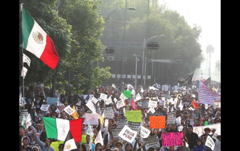 CIUDAD DE MÉXICO (09/ENE/2017).- Cerca de cinco mil personas entonaron el Himno Nacional y gritaron "¡Viva México!" durante un mitin en el Zócalo capitalino, luego de que diversos contingentes marcharon contra el gasolinazo, del Ángel de la Independencia hacia este punto de la ciudad.El contingente proveniente del Ángel de la Independencia partió alrededor de las 16:00 horas y a él se sumaron las movilizaciones convocadas en distintos puntos de la ciudad.Los manifestantes entraron por la calle de 5 de Mayo y se trasladaron a la Plaza de la Constitución.Entre las consignas que los manifestantes expresaron se encuentran críticas al gobierno federal, así como la demanda de que se dé marcha atrás al incremento en el precio de las gasolinas.Representantes de organizaciones, así como manifestantes que acudieron de manera independiente, tomaron la palabra en el micrófono.Las banderas de México en color negro y banderines que dicen "fuera Peña" se encuentran entre lo más visto durante esta marcha.