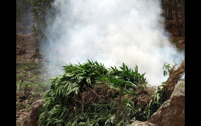 México | El predio se localizó gracias a una denuncia ciudadana Destruyen dos hectáreas de mariguana en Nayarit Elementos militares ubicaron cuatro plantíos en una extensión de 2.4 hectáreas, y un campamento establecido entre sembradíos de maíz Por: NTX 29 de septiembre de 2011 - 10:49 hs Lo que se encontró y posteriormente se destruyó fue en el municipio de Compostela. ARCHIVO / TEPIC, NAYARIT (29/SEP/2011).- La décimotercera Zona Militar en Tepic, informó a través de un comunicado que este miércoles destruyó un sembradío de dos hectáreas de marihuana, en inmediaciones del poblado El Refilión, municipio de Compostela. El comunicado asegura que el predio se localizó gracias a una denuncia ciudadana, a donde se trasladó personal militar para su aseguramiento y posterior destrucción. Se ubicaron cuatro plantíos en una extensión de 2.4 hectáreas, y un campamento establecido entre sembradíos de maíz, donde además se halló un vehículo que más tarde se supo, tenía reporte de robo. La adscripción militar señaló que lo asegurado fue puesto a disposición de las autoridades correspondientes y llamó a la población a seguir denunciando hechos ilícitos. Temas Estados Decomiso Mariguana Recibe las últimas noticias en tu e-mail Todo lo que necesitas saber para comenzar tu día Registrarse implica aceptar los Términos y Condiciones