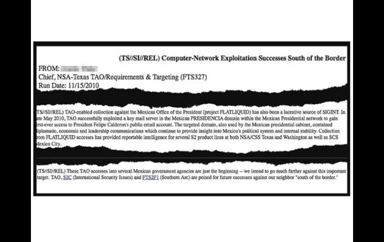 México | Indican que responderá sobre el asunto por medio de la vía diplomática EU evita dar respuesta pública por espionaje a Calderón Indican que responderá sobre el asunto por medio de la vía diplomática Por: NTX 20 de octubre de 2013 - 19:48 hs Documento tomado de 'Der Spiegel' donde se describe que la NSA obtuvo información de comunicaciones de Presidencia. ESPECIAL / CIUDAD DE MÉXICO (20/OCT/2013).- Al afirmar que el gobierno de Estados Unidos responderá por vía diplomática al supuesto espionaje a la Presidencia de México durante la administración de Felipe Calderón, la embajada de esa nación aclaró que ese país "recaba datos de inteligencia de la misma naturaleza que es reunida por todas las naciones". En una declaración dada a conocer por fuentes de la representación diplomática, la embajada puntualizó que la única vía que el gobierno de la Unión Americana usará para dar respuesta al tema es la diplomática. "El gobierno de los Estados Unidos responderá a través de medios diplomáticos a nuestros socios y aliados", señaló, aunque aseveró que "no vamos a comentar públicamente sobre cada aspecto de una supuesta actividad de inteligencia". La declaración de dos párrafos indica que el gobierno estadounidense valora su "cooperación con todos los países sobre asuntos de interés mutuo". Este domingo, después de que la Secretaría de Relaciones Exteriores de México diera a conocer un pronunciamiento sobre la supuesta intromisión de la Agencia de Seguridad Nacional de Estados Unidos al servidor electrónico de la Presidencia de la República, la embajada dio a conocer su posición. El posicionamiento señala que "en términos más amplios, los Estados Unidos valoran su relación con México" y destaca que los dos países son socios estratégicos con una estrecha cooperación en distintos frentes; prueba de ello es la exitosa visita de trabajo del presidente Barack Obama a su contraparte mexicano Enrique Peña Nieto, en mayo. "Ambos presidentes comparten el deseo de trabajar más estrechamente para llevar prosperidad y seguridad a nuestros ciudadanos", expresó la representación del gobierno estadunidense en México. SABER MÁS Armas, la otra intromisión Estados Unidos no sólo espió al ex presidente Felipe Calderón y al actual Mandatario Enrique Peña Nieto, también facilitó el ingreso de más de dos mil armas hacia México con el fin de desarticular una red de contrabandistas. Con dichas armas asesinaron al menos 200 personas, entre ellas dos agentes estadounidenses. Temas Felipe Calderón Política Estados Unidos Espionaje Lee También ¿Bad Bunny fuera del Super Bowl? Este sería el show alternativo Poza Rica, inundado por desbordamiento del río Cazones Bad Bunny permanece sentado durante "God Bless America" y enciende las redes Lista actualizada de selecciones que ya clasificaron al Mundial 2026 Recibe las últimas noticias en tu e-mail Todo lo que necesitas saber para comenzar tu día Registrarse implica aceptar los Términos y Condiciones