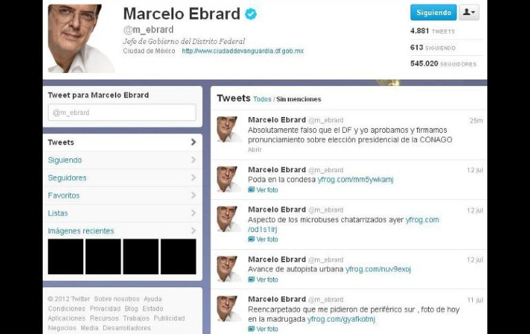 México | El jefe de Gobierno del DF hace aclaración a través de Twitter Ebrard rechaza haber firmado reconocimiento de triunfo de Peña Absolutamente falso que el DF y yo aprobamos y firmamos pronunciamiento sobre elección presidencial de la Conago: Marcelo Ebrard Por: NTX 13 de julio de 2012 - 19:35 hs A través de su cuenta @m_ebrard, el funcionario capitalino se refirió al encuentro de la Conago y sus pronunciamientos. / CIUDAD DE MÉXICO (13/JUL/2012).- El jefe de Gobierno del Distrito Federal, Marcelo Ebrard Casaubon, dijo que es ''absolutamente falso que el DF y yo aprobamos y firmamos pronunciamiento sobre elección presidencial de la Conago''. A través de su cuenta @m_ebrard, el funcionario capitalino se refirió al encuentro que el día de hoy sostuvieron en la ciudad de Querétaro, Queretaro, los integrantes de la Conferencia Nacional de Gobernadores (Conago). Temas Enrique Peña Nieto Conago Marcelo Ebrard Elecciones México 2012 Lee También Desfile de Alebrijes Monumentales, ruta y hora del evento HOY en CDMX Así es como el minimalismo ha impactado en la cultura mexicana Desfile de Alebrijes 2025: Horario y calles cerradas en CDMX Marcha Zombie 2025: Calles cerradas y alternativas viales en CDMX Recibe las últimas noticias en tu e-mail Todo lo que necesitas saber para comenzar tu día Registrarse implica aceptar los Términos y Condiciones