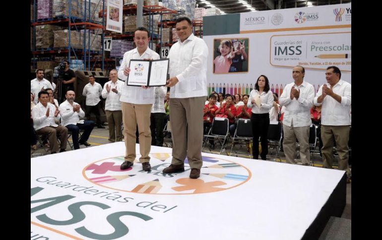 CIUDAD DE MÉXICO (11/MAY/2017).- Para construir dos Unidades de Medicina Familiar en Mérida, Yucatán, y reforzar la atención médica que se brinda en la entidad, así como la apertura de una nueva guardería en apoyo a madres trabajadoras, el IMSS invertirá 560 millones de pesos en infraestructura médica, anunció Mikel Arriola Peñalosa, director del instituto.Al encabezar junto con el gobernador Rolando Zapata Bello un Encuentro de Adolescentes, que organiza el programa IMSS-Prospera, el titular del Seguro Social informó que las nuevas clínicas de 10 consultorios se ubicarán en los fraccionamientos “Los Héroes” y “Francisco de Montejo”, para las cuales se invertirán 127 millones de pesos en su construcción.Destacó que por instrucciones del Presidente de la República, Enrique Peña Nieto, se entregarán seis Unidades Médicas Móviles para IMSS-Prospera y recordó que en este año entraron en operación seis nuevas ambulancias, con lo que se llegó a 34 unidades que refuerzan los traslados programados de pacientes.Durante la clausura del Encuentro de Adolescentes, que se desarrolló los días 10 y 11 de mayo, con la participación de cerca de mil jóvenes que recibieron diversos talleres sobre salud sexual y reproductiva, sobrepeso, prevención de la violencia y adicciones, Arriola Peñalosa les pidió apostarle a la prevención y los exhortó acudir a dos consultas al año a los módulos de Prevenimss para combatir males crónicos y recibir información para evitar embarazos adolescentes.El gobernador Rolando Zapata agradeció esta inversión. “Nos sentimos muy contentos y agradecemos todos quienes nos encontramos aquí, en particular esta gran representación de la juventud yucateca, lo que hoy significa una gran fortaleza a nuestro estado, un servicio muy importante como lo es guarderías, ahora con preescolar, así como nuevos espacios de salud para atender a toda la derechohabiencia”.Para este Encuentro de Adolescentes se invitaron ponentes de la Comisión Nacional de los Derechos Humanos y del Instituto Nacional de las Mujeres, quienes impartieron conferencias magistrales sobre los derechos de la niñez y la adolescencia, embarazo temprano y prevención de la violencia escolar.Posteriormente, ante madres trabajadoras, el director general del IMSS recibió del gobernador de Yucatán los folios de certificación de validez oficial para impartir el primer año de preescolar en las 33 guarderías del Seguro Social, en beneficio de cuatro mil 300 niñas y niños de la entidad que tendrán el primer año de preescolar de manera gratuita.El titular del Seguro Social terminó la gira de trabajo, junto con el gobernador, encabezando una reunión con empresarios, en la que destacó el crecimiento del empleo de 4.5% en Yucatán, por arriba de la media nacional.