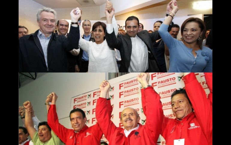 México | Fausto Vallejo encabeza la preferencias electorales seguido de Luisa María Calderón El PRI y el PAN aventajan en Michoacán De acuerdo con el PREP, hasta el momento el abanderado tricolor Fausto Vallejo encabeza las preferencias electorales seguido por la panista Luisa María Calderón Por: EL INFORMADOR 14 de noviembre de 2011 - 03:44 hs Amparados por líderes partidistas, Luisa María Calderón y Fuasto Vallejo celebraron sus rspectivos 'triunfos'. NOTIMEX-EFE / MORELIA, MICHOACÁN (14/NOV/2011).- Los candidatos de los partidos Revolucionario Institucional (PRI) y Acción Nacional (PAN), Fausto Vallejo Figueroa y Luisa María Calderón, encabezan las preferencias electorales por la gubernatura de Michoacán; a los festejos de ayer también se unió el perredista Silvano Aureoles, quien va tercero en las votaciones. Aunque la presidenta del Instituto Electoral de Michoacán (IEM), María de los Ángeles Llanderal llamó a los partidos políticos y candidatos a abstenerse de triunfalismos electorales, los tres abanderados hicieron caso omiso y se proclamaron ganadores de la contienda, en la que hasta el momento se ha contabilizado 85.41% de los votos. De acuerdo al Programa de Resultados Electorales Preliminares (PREP), Fausto Vallejo encabeza la contienda con 35.35% de los sufragios; lo sigue de cerca “Cocoa” Calderón, con 32.68%, y en tercero con 28.91%, está Silvano Aureoles. Tras la conferencia en la que se declaró vencedor, Fausto Vallejo se dirigió a festejar a la Plaza Melchor Ocampo, donde hizo un llamado al reconciliación. Luisa María Calderón hizo lo propio y llegó a la Plaza Morelos, donde ya la esperaban sus simpatizantes y el resguardo del Estado Mayor Presidencial. Aureoles había cancelado el festejo, pero su equipo de prensa confirmó la concentración, que se llevó a cabo en el Monumento a Lázaro Cárdenas. En caso de confirmarse la derrota del sol azteca en Michoacán, perderían el importante bastión que gobernaron durante una década. Temas Michoacán Estados Elecciones 2011 Lee También EU alerta sobre posible ruptura del alto el fuego en Gaza por Hamás Verstappen se lleva la pole en Austin y presiona a los McLaren Sheinbaum descarta riesgo por crecimiento del río Pánuco en Tamaulipas Protestan contra Trump en Estados Unidos Recibe las últimas noticias en tu e-mail Todo lo que necesitas saber para comenzar tu día Registrarse implica aceptar los Términos y Condiciones