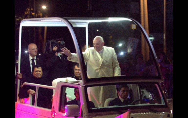 México | Pernoctará esta noche en dicha sede; el sábado comienzan sus actividades en el país El Papa Francisco llega a la Nunciatura Pernoctará esta noche en dicha sede; el sábado comienzan sus actividades en el país Por: SUN 12 de febrero de 2016 - 20:19 hs CIUDAD DE MÉXICO (12/FEB/2016).- Luego de su recibimiento en el Aeropuerto Internacional de la Ciudad de México y su recorrido a bordo del “papamóvil”, el Papa Francisco llegó a la Nunciatura Apostólica, al sur de la Ciudad de México, donde pernoctará esta noche. Francisco estuvo acompañado por el cardenal Norberto Rivera Carrera y por el nuncio apostólico Christophe Pierre. A su paso, el Pontífice fue saludado por miles de feligreses capitalinos y de otras entidades del país que se congregan al paso del vehículo papal. En algunos puntos, las personas saludaron ya con pañuelos blancos, otros sólo con la mano, mientras que algunos gritan porras de bienvenida al jefe de la Iglesia Católica. Además, ersonas reunidas afuera de la nunciatura y sobre la Avenida de los Insurgentes Sur cantaron el "Cielito Lindo", mientras esperaban el paso del máximo líder de la Iglesia Católica. Un Papa Francisco un poco cansado pero alegre y jovial no cesó de saludar, bendecir y señalar a las personas que salieron a las calles para saludarlo. Temas Ciudad de México Papa Francisco El Papa Francisco en México Recibe las últimas noticias en tu e-mail Todo lo que necesitas saber para comenzar tu día Registrarse implica aceptar los Términos y Condiciones