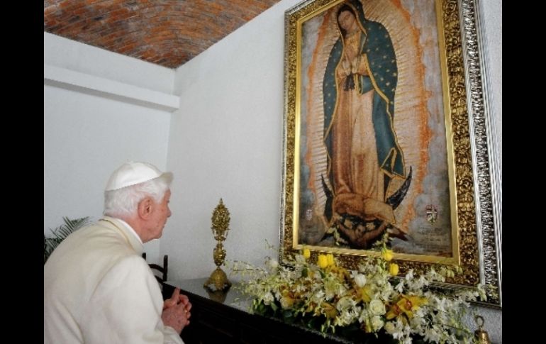 México | Benedicto XVI aprovecha la mañana ''tranquilamente'' para preparar sus discursos El Papa ora ante la Virgen de Guadalupe La mitad de su segundo día en el país la pasa en actividades privadas en el Colegio Miraflores Por: AFP 24 de marzo de 2012 - 13:29 hs Durante su estancia en el Colegio Miraflores, Benedicto XVI pudo orar ante un retablo de la Virgen de Guadalupe. AFP / LEÓN, GUANAJUATO (24/MAR/2012).- El Papa Benedicto XVI oró la mañana de este sábado en privado ante una imagen de la Virgen de Guadalupe, la patrona de América Latina, en el inicio de su segundo día de actividades de su gira por México y Cuba, informó el servicio de prensa de El Vaticano. El pontífice inició su jornada celebrando una misa en la capilla privada del Colegio Miraflores en León, donde se alojará las tres noches que pasará en el país antes de partir hacia Cuba, la otra escala del viaje, y luego recorrió las instalaciones del lugar. Durante su recorrido dedicó unos minutos a orar ante una réplica de la imagen de la Virgen de Guadalupe que, según las creencias de los católicos, se apareció en siglo XVI en un cerro de Tepeyac cerca del centro de la capital mexicana, en el que actualmente se levanta el santuario mariano más visitado del mundo. Por razones de salud, Benedicto XVI no incluyó esta vez a la capital mexicana y a la Basílica de la Virgen de Guadalupe en el programa, aunque la mencionó en su discurso de llegada a México. El portavoz del Vaticano, Federico Lombardi, dijo a la prensa que el Papa había "dormido bien" y que trabajaba "tranquilamente en sus discursos con sus colaboradores". El programa oficial de este segundo día en México del pontífice no comenzará hasta el atardecer cuando vaya a la histórica ciudad de Guanajuato (centro), capital del estado del mismo nombre, para reunirse con el presidente Felipe Calderón y recibir a un grupo de niños. Temas Virgen de Guadalupe Estados Iglesia Católica .El Papa Benedicto XVI en México Lee También Angelina Jolie planea dejar EU por diferencias con gobierno de Trump Trump dijo merecer Nobel de la Paz por haber "terminado con siete guerras" ¿Trump ganaría el Nobel de la Paz? Veteranos del Comité de premiación responden El SAT va contra factureras; pondrá "piso parejo" en pago de impuestos Recibe las últimas noticias en tu e-mail Todo lo que necesitas saber para comenzar tu día Registrarse implica aceptar los Términos y Condiciones