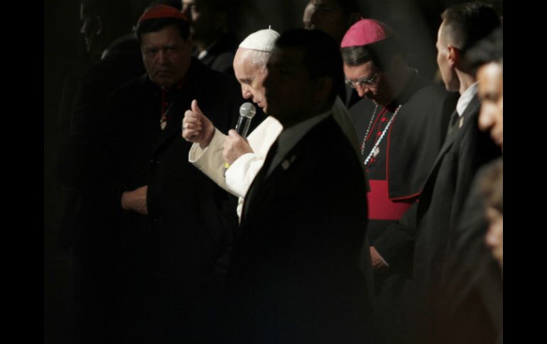 México | Bendijo a los feligreses reunidos en las afueras de la representación diplomática El Papa sale de Nunciatura para saludar a feligreses El Pontífice bendijo a los feligreses reunidos en las afueras de la representación diplomática Por: SUN 12 de febrero de 2016 - 21:33 hs CIUDAD DE MÉXICO (12/FEB/2016).- El Papa Francisco rompió el protocolo y en punto de las 21:45 minutos salió de la Nunciatura Apostólica para saludar y bendecir a los feligreses reunidos en las afueras de la representación diplomática con quienes rezó y les pidió mirar a la Virgen. Francisco salió a la calle de Juan Pablo II; se dirigió hacia la valla ubicada frente a la Nunciatura donde algunas personas le regalaron flores blancas para ser bendecidas. Los feligreses detrás del gritaban “Te queremos, Padre” y “Bendición, bendición”. Algunos, mostraron alegría y llanto ante el jerarca católico. De forma totalmente improvisada, el Papa tomó un micrófono para saludar a las personas, bendecirlos, y pedir que no olviden mirar a la Virgen y rezar por las personas que quieren y a las que no nos quieren, por las que nos han hecho daño. Temas Iglesia Católica Ciudad de México Papa Francisco El Papa Francisco en México Papa - Fieles Recibe las últimas noticias en tu e-mail Todo lo que necesitas saber para comenzar tu día Registrarse implica aceptar los Términos y Condiciones