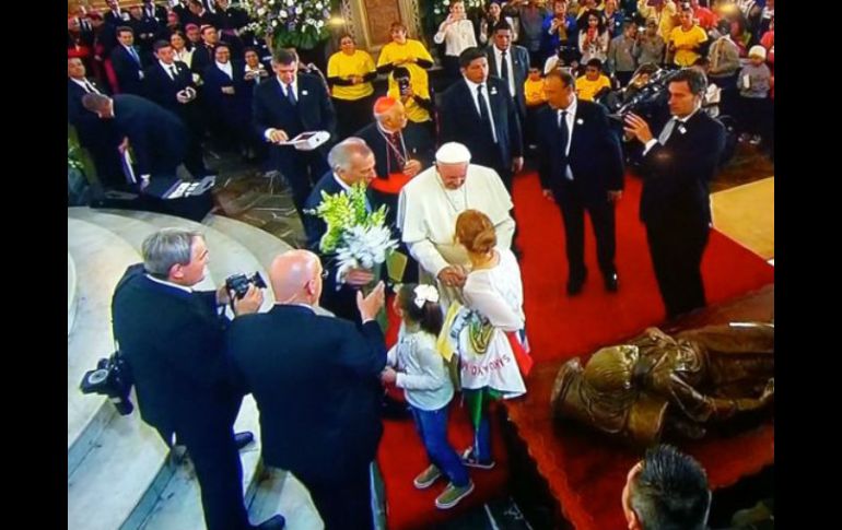 México | El Pontífice mantiene un encuentro con 600 menores de edad en la capital michoacana El Papa se reúne con niños en la Catedral de Morelia El Pontífice mantiene un encuentro con 600 menores de edad en la capital michoacana Por: SUN 16 de febrero de 2016 - 14:36 hs CIUDAD DE MÉXICO (16/FEB/2016).- Como parte de sus actividades en la capital de Michoacán, el Papa Francisco llegó a la Catedral de Morelia para mantener un encuentro con 600 niños. El Pontífice salió del Arzobispado, donde descansó y comió, y avanzó al siguiente evento a su siguiente evento, donde dirigió algunas palabras a los pequeños ahí reunidos. Les pidió a los niños de México que oren y pidan por la familia, los padres, los hermanos y "hasta por los enemigos", porque todos ellos "nos ayudan a crecer"; y les dijo que aunque "la vida no es linda con enemigos", oren también por ellos. Al salir de la Catedral, el Santo Padre se detuvo en el atrio para escuchar a la orquesta y el Coro de Infantes de ese templo. Al terminar la canción, se acercó para que le tomaran una fotografía con el coro, a cuyos integrantes les invitó a seguir siendo creativos, a buscar la belleza y "las cosas lindas que duran toda la vida y nunca se dejen pisotear por nadie". Enseguida les dio la bendición y les pidió que de vez en cuando le canten alguna "canción, aunque estén lejos". Antes de subir al 'papamóvil', el presidente municipal de Morelia, Alfonso Martínez Alcázar, y su familia entregaron varios regalos al Papa Francisco, quien a su vez les dio rosarios e imágenes religiosas. A las 16:00 horas se espera que asista al estadio "José María Morelos" con 50 mil jóvenes, en la que será la última actividad que realizará este martes antes de regresar a la Ciudad de México. Por la mañana, Francisco ofició misa en el estadio "Venustiano Carranza" y se reunió con sacerdotes y religiosas de todo el país. Con información de NTX Temas Michoacán Niños Papa Francisco El Papa Francisco en México Lee También Reformas a Ley de Amparo no limita derechos ciudadanos Festival del Pan de Muerto en CDMX: Fechas, horarios y actividades México vs Argentina: ¿Quién ganará el partido según la IA? CDMX, con pronóstico de lluvias fuertes hoy sábado Recibe las últimas noticias en tu e-mail Todo lo que necesitas saber para comenzar tu día Registrarse implica aceptar los Términos y Condiciones