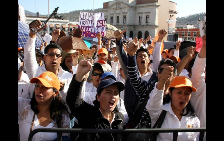 México | La Sección 22 del Sindicato inicia movilizaciones en contra de la Reforma Educativa El SNTE en Oaxaca realiza nuevas movilizaciones La Sección 22 del Sindicato inicia movilizaciones en contra de la Reforma Educativa Por: NTX 23 de marzo de 2013 - 15:56 hs Los profesores marcharán en dirección al zócalo de la capital para realizar un mitin. ARCHIVO / OAXACA, OAXACA (23/MAR/2013).- La Sección 22 del Sindicato Nacional de Trabajadores de la Educación (SNTE) inició hoy en esta ciudad una jornada de movilizaciones en rechazo a las reformas educativa y laboral, que contempló una marcha. Los profesores, encabezados por los integrantes de su Comité Ejecutivo Seccional, marcharon desde las inmediaciones de la agencia de Trinidad de Viguera, al poniente de esta capital, para luego dirigirse al zócalo capitalino y realizar una mitin. Según los acuerdos de la asamblea instalada de manera permanente, tras la marcha de este 23 de marzo, los profesores oaxaqueños retornarán a sus regiones, donde desde el próximo lunes realizarán una serie de acciones de protesta. Temas SNTE Estados Oaxaca Manifestaciones en México Lee También Detienen en Tabasco a menor vinculado con grupo delictivo Hoy No Circula lunes 13 de octubre 2025: Autos que descansan en CDMX y Edomex Revelan llamada al 911 con que se reportó la muerte de Diane Keaton Clara Brugada rinde su Primer Informe de Gobierno Recibe las últimas noticias en tu e-mail Todo lo que necesitas saber para comenzar tu día Registrarse implica aceptar los Términos y Condiciones
