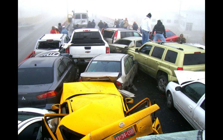 México | Hay cinco lesionados El hielo provoca dos carambolas en Saltillo En un accidente, 32 vehículos chocaron Por: SUN 14 de enero de 2011 - 02:30 hs En el lugar del accidente, se impactaron 32 automóviles. EL UNIVERSAL / SALTILLO, COAHUILA (14/ENE/2011).- Debido a la intensa neblina y al pavimento congelado provocados por las bajas temperaturas, se registraron dos choques múltiples en la que se vieron involucrados medio centenar de vehículos, con saldo de cinco personas lesionadas. En el boulevard Emilio Arizpe de la Maza entre Urdiñola y Antonio Cárdenas, se impactaron 32 automóviles y camionetas. En el lugar paramédicos de la Cruz Roja atendieron a varias personas y enviaron a cinco a los hospitales cercanos. El otro percance vial ocurrió momentos después en el periférico Luis Echeverría, a la altura del puente de Valle Dorado (foto), donde colisionaron 18 vehículos y no se reportaron heridos. Temas Estados Accidentes México Coahuila Lee También David Cohen muere tras ataque afuera de juzgados ¿Dónde ver EN VIVO el partido amistoso México vs Ecuador? "Sonia" marcha en el Pacífico; sube la potencialidad ciclónica "La Mañanera" de Sheinbaum de hoy martes 14 de octubre de 2025 Recibe las últimas noticias en tu e-mail Todo lo que necesitas saber para comenzar tu día Registrarse implica aceptar los Términos y Condiciones