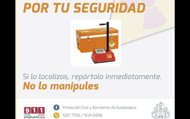 GUADALAJARA, JALISCO (02/AGO/2017).- Protección Civil de Nuevo León emitió una alerta que se ha expandido a nivel nacional por el robo de material radioactivo propiedad de la Universidad Autónoma de Nuevo León.De acuerdo con un comunicado emitido por el gobierno de Nuevo León, se trata de un densímetro nuclear que fue sustraído de la camioneta en la que era trasladado cuando el chofer encargado se detuvo a comer en una plaza comercial de la colonia Residencial Universidad, en el municipio de San Nicolás, Nuevo León.Se informó que el aparato robado tiene un forma cuadrada de aproximadamente 30 centímetros de largo y 10 kilos de peso, en colores amarillo y naranja con logotipos de material radioactivo.Además se hizo un enérgico llamado a la ciudadanía para reportar de manera inmediata cualquier pista sobre su paradero y a no acercarse al dispositivo en caso de localizarlo y que puede causar graves afectaciones a la salud y al medio ambiente si no se maneja de forma adecuada, ya que se debe establecer un perímetro de seguridad de al menos 30 metros antes de manipularlo.Personal de Protección Civil y Bomberos de Guadalajara compartió las recomendaciones en su cuenta de Twitter e instó a los ciudadanos a llamar a los números de emergencia en caso de cualquier eventualidad.En caso de tener cualquier información relacionada con el material radioactivo robado se pide notificar de inmediato a las autoridades o llamar a cualquiera de estos números de emergencia:Emergencias: 911 Comisión Nacional de Seguridad: 088 Centro Nacional de Comunicaciones de Protección Civil: 01 800 00 413 00 o bien al 01(55) 5128 0000, extensiones 37807 a 37812. Comisión Nacional de Seguridad Nuclear y Salvaguardias: 01 800 111 3168, 045 (55) 9199 8799 y 045 (55) 5415 2918