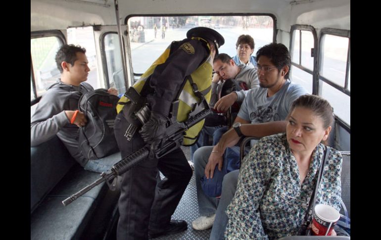 México | Participan en la operación agentes estatales y elementos de la PFP En Jalisco se suman cinco mil agentes al operativo de seguridad La Entidad asume las acciones acordadas desde la Conago para combatir índices delincuenciales de impacto social Por: EL INFORMADOR 14 de junio de 2011 - 03:28 hs La Policía pone el énfasis en Toluca en el robo a pasajeros del transporte urbano. EL UNIVERSAL / Combaten delincuencia 300 milagentes en el territorio nacionalCIUDAD DE MÉXICO (14/JUN/2011).- Arrancó en los 31 estados de la República y en el Distrito Federal el operativo nacional de seguridad, y Jalisco aportó lo suyo. De acuerdo con la Secretaría de Seguridad Pública del Estado de Jalisco (SSPEJ), en la Entidad participan alrededor de cinco mil policías y agentes de Vialidad que se distribuyen en diferentes zonas del territorio jalisciense. El comisario general Francisco Alejandro Solorio Aréchiga indicó que intervienen en la operación además de agentes estatales, elementos de la Policía Federal Preventiva, pero no así personal del Ejército Mexicano que realiza sus propios dispositivos de prevención. El operativo Conago 1 se anunció el viernes y persigue fundamentalmente combatir índices delincuenciales de impacto social, como son portación ilegal de armamento, tráfico de droga, secuestro y robo de vehículos, precisó Solorio Aréchiga. Los primeros resultados que arroja en la Entidad el dispositivo coordinado por la Mesa Directiva de la Conferencia Nacional de Gobernadores, se limita a la detención de un número indeterminado de personas que transportaban cinco kilos de mariguana y hachís, en la zona de Huejúcar, en el Norte de Jalisco. El operativo se extenderá hasta el viernes, y el lunes se darán a conocer los resultados de esta inédita acción conjunta. Temas Operativos de Seguridad Conago Estados Recibe las últimas noticias en tu e-mail Todo lo que necesitas saber para comenzar tu día Registrarse implica aceptar los Términos y Condiciones