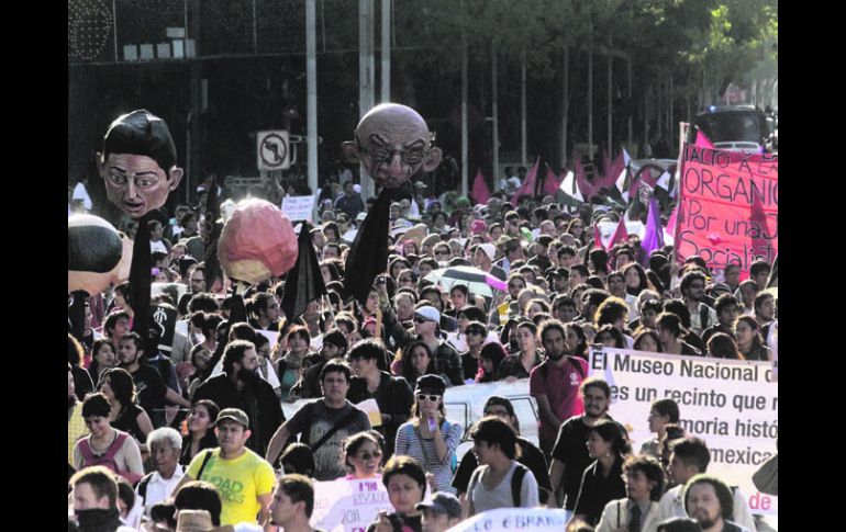 México | Los detenidos fueron enviados a los reclusorios varonil y femenil de Santa Martha En el DF, piden en una marcha liberar a 71 consignados Grupos juveniles insisten en que los desmanes del sábado fueron infiltrados por provocadores ajenos a sus movimientos Por: EL INFORMADOR 4 de diciembre de 2012 - 00:36 hs La manifestación de ayer. El contingente fue encabezado por padres de los arrestados. EL UNIVERSAL / CIUDAD DE MÉXICO (04/DIC/2012).- Más de dos mil personas marcharon ayer por el Paseo de la Reforma y avanzaron hacia el Zócalo por Avenida Hidalgo, para protestar por el traslado de 71 acusados de los desmanes del 1 de diciembre pasado a los reclusorios Varonil Norte y Femenil de Santa Martha. El contingente evitó marchar sobre la Avenida Juárez, donde el sábado ocurrieron hechos de violencia que derivaron en disturbios y destrozos de ventanas y saqueos de negocios de la zona. La movilización, que arrancó aproximadamente a las 15:20 horas del Ángel de la Independencia, fue resguardada por dos filas de granaderos, que escoltaron a los manifestantes por ambos lados. La marcha se realizó sin incidentes de violencia, sólo hubo consignas en contra del gobierno de Enrique Peña Nieto y en demanda de liberar a quienes consideran presos políticos. El grupo es encabezado por familiares y amigos de los detenidos, así como por el Frente de los Pueblos en Defensa de la Tierra, que lidera Ignacio del Valle, quienes portan machetes. También participan estudiantes de la UNAM, del Politécnico y organizaciones sociales. Alberto Cruz, amigo de Regina López Martínez, exige la liberación de su amiga, que fue remitida con otras 10 mujeres al penal de Santa Martha, en donde deberán pasar 72 horas para presentar las pruebas de su liberación. Comentó que a su amiga la detuvieron en la calle Filomeno Mata cuando tomaba fotos de las protestas y señaló que los policías capitalinos la agredieron antes de subirla al camión de granaderos. Luego de ingresar al Zócalo capitalino, los inconformes se apostaron frente al Palacio Nacional, donde realizaron un mitin en el que emitieron diversos pronunciamientos contra lo que consideraron actos de represión. En entrevista, Santiago de Jesús Francisco deslindó a la Unión de la Juventud Revolucionaria de México de los actos vandálicos que se registraron en el primer cuadro de la ciudad y en las inmediaciones de la Cámara de Diputados el pasado 1 de diciembre. El estudiante de Derecho de la Universidad Alfa Lambda del Valle de Toluca aseguró que fue una de las personas detenidas en esa fecha; debido a que no se encontraron elementos suficientes para inculparlo, se le dejó en libertad al igual que otras personas, pero aseguró que otros detenidos fueron consignados a pesar de que tampoco había pruebas en su contra. Refirió que tiene la creencia de que quienes participaron en los desmanes fueron “personas infiltradas” que tenían la consigna de desvirtuar el movimiento. EL BALANCELos acusadores En la Procuraduría de Justicia capitalina han declarado varios de los agraviados, entre quienes están el corresponsal de una agencia de noticias inglesa y apoderados legales de cinco sucursales bancarias que resultaron con daños, así como de la Secretaría de Seguridad Pública y de la Procuraduría por los daños a cuatro patrullas; además de 20 policías lesionados. PROCURADURÍA CAPITALINAInvestigan participación de “anarquistas” CIUDAD DE MÉXICO.- La mañana de este lunes ingresaron al Reclusorio Norte 71 detenidos por los disturbios del sábado en el Centro Histórico, de los cuales 60 son hombres y 11 mujeres. El procurador de Justicia capitalino, Jesús Rodríguez Almeida, advirtió la noche del domingo que se consignaría a quienes las pruebas —videos y fotografías3 señalen como los que participaron en los desmanes. “De quienes no tengamos evidencia para probar su responsabilidad, serán liberados”. Algunos de los detenidos por los disturbios del pasado sábado dijeron pertenecer a grupos como Bloque Negro Anarquista, Cruz Negra Anarquista y Coordinadora Estudiantil Anarquista. En declaraciones a una radioemisora local, el procurador de la capital, Jesús Rodríguez, afirmó que los detenidos se exponen a condenas que van de cinco a 30 años de prisión: “La conducta que realizaron estas personas, con todos los instrumentos para actuar con violencia contra personas y cosas, se ajusta perfectamente a lo que dice el código penal”. “Fue planeado para atacar la paz pública”, añadió. De acuerdo con las autoridades capitalinas, los detenidos destruyeron propiedad privada y pública en varios puntos de la ciudad, incluyendo las inmediaciones del emblemático Palacio de Bellas Artes, y agredieron a policías incluso con bombas molotov. Daños materiales y ventas afectadas En tanto, el presidente de la Cámara de Comercio de Ciudad de México, Ricardo Navarro, informó en conferencia de prensa que en el Centro Histórico los comerciantes dejaron de vender alrededor de 950 millones de pesos, mientras en la zona de Congreso, donde se efectuó la investidura de Peña Nieto, el monto suma 149 millones. A eso se agregan los daños causados a los inmuebles comerciales y de servicios que se ubican en la zona Centro, que suman alrededor de 28 millones de pesos, “sólo en daños exteriores”. Aclaró que aún falta por cuantificar las pérdidas por saqueos, que se divulgarán posteriormente. Temas Estados Distrito Federal Manifestaciones en la Cd. de México Recibe las últimas noticias en tu e-mail Todo lo que necesitas saber para comenzar tu día Registrarse implica aceptar los Términos y Condiciones