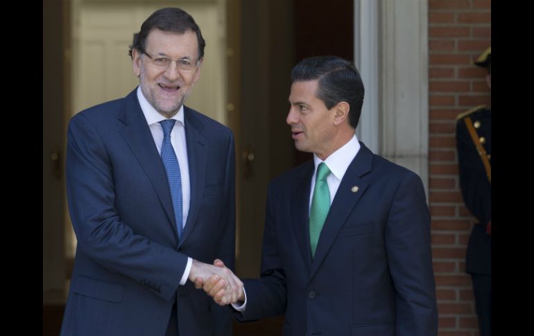 México | En el marco de la visita de Estado que lleva a cabo a España Enrique Peña Nieto se reúne con Mariano Rajoy Ambos líderes aprovecharán para repasar las relaciones bilaterales Por: EFE 10 de junio de 2014 - 07:21 hs Rajoy y Peña comparecerán posteriormente en una conferencia de prensa ante los periodistas. AP / MADRID, ESPAÑA (10/JUN/2014).- El jefe del Gobierno español, Mariano Rajoy, está reunido hoy en el Palacio de la Moncloa al Presidente de México, Enrique Peña Nieto, en el marco de la visita de Estado que lleva a cabo a España. Rajoy recibió a Peña Nieto a las puertas del edificio en el que tiene su oficina y su residencia en Madrid, en el que ambos posaron brevemente para los informadores gráficos mientras se saludaban. Ya en el interior del edificio comenzaron su entrevista, en la que aprovecharán para repasar las relaciones bilaterales. La situación económica internacional y en ambos países y el momento que vive América Latina son algunas cuestiones que se abordan en la entrevista, tras la que se firmarán una serie de acuerdos entre España y México. Rajoy y Peña Nieto comparecerán posteriormente en una conferencia de prensa ante los periodistas, prevista a partir de las 15:15 hora local (13.15 GMT). Temas Gobierno de México Giras presidenciales España Enrique Peña Nieto Mariano Rajoy Lee También México reacciona a acuerdo de paz entre Israel y Hamás ¿Dónde ver EN VIVO el partido amistoso México vs Colombia? Dónde ver EN VIVO el México vs Argentina por el Mundial Sub-20 Dólar amanece encarecido este 10 de octubre Recibe las últimas noticias en tu e-mail Todo lo que necesitas saber para comenzar tu día Registrarse implica aceptar los Términos y Condiciones