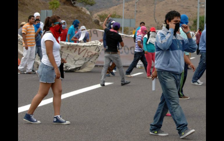 México | Un grupo de alumnos bloquea ambos sentidos de la caseta de cobro Estudiantes se apoderan de caseta Palo Blanco por caso Ayotzinapa Un grupo de alumnos en su mayoría encapuchados, bloquean ambos sentidos de la caseta de cobro para demandar la presentación con vida de los normalistas Por: SUN 12 de noviembre de 2014 - 12:52 hs Los procedentes de varias escuelas rurales y de la Normal de Ayotzinapa resguardan las entradas y salidas de manera pacífica. NTX / ARCHIVO CHILPANCINGO, GUERRERO (12/NOV/2014).- Un grupo de estudiantes, la mayoría encapuchados, "tomó" la caseta de Palo Blanco en la Autopista del Sol en demanda de la presentación con vida de los 43 normalistas de Ayotzinapa desaparecidos desde el pasado 26 de septiembre. Los alumnos, provenientes de varias escuelas rurales y de la Normal de Ayotzinapa, llegaron a bordo de cinco autobuses y se apostaron en ambos sentidos de la caseta de cobro. En el lugar, los jóvenes piden cooperaciones voluntarias para dejar pasar a los automovilistas, y de manera pacífica resguardan las entradas y salidas. Esta caseta ha sido tomada varias veces tras el caso Iguala, donde murieron seis personas, tres de ellos alumnos de la Normal Rural "Raúl Isidro Burgos". Tras ese hecho también permanecen en calidad de desaparecidos 43 estudiantes. Paralelamente a la toma de la caseta, estudiantes normalistas y policías comunitarios bloquean la carretera federal Chilpancingo-Tlapa, a la altura de Ayotzinapa. El bloqueo, que inició a las 10:00 horas, se localiza en el crucero de Apango (Mártir de Cuilapa), y únicamente hay paso a Tlapa. Temas Estados Carreteras Guerrero Manifestaciones en México Lee También ¿A qué hora es y dónde ver EN VIVO el GP de México 2025 de F1? Transportistas de la FAT anuncian bloqueo para esta fecha en CDMX "La Mañanera" de Sheinbaum de hoy martes 21 de octubre de 2025 Asesinan a maestra en Oaxaca presuntamente por una calificación Recibe las últimas noticias en tu e-mail Todo lo que necesitas saber para comenzar tu día Registrarse implica aceptar los Términos y Condiciones