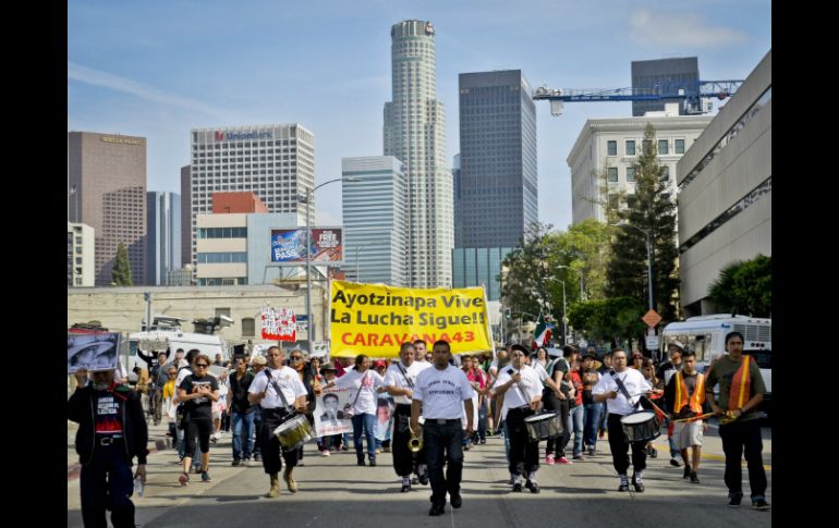 México | Caminaron hacia el consulado mexicano para atraer atención hacia su caso Familiares de normalistas de Ayotzinapa marchan en Los Ángeles Los manifestantes caminaron hacia el consulado mexicano para atraer atención hacia su caso Por: AP 22 de marzo de 2015 - 21:50 hs Los manifestantes marcharon golpeando tambores, mostrando estandartes y fotografías de los estudiantes. EFE / S. Palley LOS ÁNGELES, ESTADOS UNIDOS (22/MAR/2015).- Algunos familiares de los 43 estudiantes que desaparecieron en septiembre en Iguala marcharon con decenas de simpatizantes en Los Ángeles para atraer atención hacia su caso. Los manifestantes marcharon golpeando tambores, mostrando estandartes y fotografías de los estudiantes en un recorrido de aproximadamente 4.8 kilómetros (tres millas) hacia el consulado mexicano. Los familiares están visitando más de una decena de ciudades de Estados Unidos para buscar apoyo de los mexicano-estadounidenses y otros grupos. Los estudiantes no han sido vistos desde el 26 de septiembre, cuando fueron detenidos por la policía de la ciudad de Iguala, en el sureño estado de Guerrero. Las autoridades mexicanas señalaron que fueron entregados a una organización de narcotraficantes, la cual los mató e incineró sus restos. Pero los familiares de las víctimas dicen que no han visto pruebas definitivas que demuestren su muerte, y mantienen la esperanza de que los estudiantes desaparecidos aún estén con vida. Temas Estados Unidos Manifestaciones en el mundo Estados Guerrero Caso Ayotzinapa Lee También Detienen a Miguel Ángel 'N', vinculado por el homicidio del sacerdote Bertoldo Pantaleón SMN advierte: Tormenta Raymond dejará lluvias intensas y fuertes vientos en 4 estados ¿Bad Bunny fuera del Super Bowl? Este sería el show alternativo Poza Rica, inundado por desbordamiento del río Cazones Recibe las últimas noticias en tu e-mail Todo lo que necesitas saber para comenzar tu día Registrarse implica aceptar los Términos y Condiciones