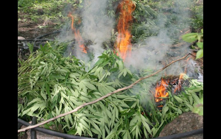México | Se implementó operativo en la carretera Hermosillo-Yepachic, en Yécora Federales destruyen 120 toneladas de mariguana en Sonora Se implementó operativo en la carretera Hermosillo-Yepachic, en Yécora Por: SUN 29 de septiembre de 2015 - 10:16 hs Esto fue resultado de sobrevuelos y trabajos de inteligencia. EL INFORMADOR / ARCHIVO CIUDAD DE MÉXICO (29/SEP/2015).- Cerca de 120 toneladas de mariguana, así como diferentes instrumentos para el cultivo del enervante fueron destruidas por elementos de la Policía Federal (PF) en dos campos de cultivo localizados en el estado de Sonora. "Personal de las divisiones de Gendarmería y Seguridad Regional de la Policía Federal implementaron un operativo en el kilómetro 254 + 800 de la carretera (16) Hermosillo – Yepachic, municipio de Yécora, Sonora, como resultado de sobrevuelos y trabajos de inteligencia e investigación de campo y gabinete”, comentó la Comisión Nacional de Seguridad ( CNS). La dependencia informó que uno de los cultivos fue localizado en la zona serrana, cuando los elementos se percataron de un terreno irregular de difícil acceso, sembrado de plantas con las características de la mariguana. "En la zona serrana, elementos de la corporación detectaron un terreno irregular de difícil acceso, sembrado de plantas con las características de la mariguana, con una superficie total de 14 mil 400 metros cuadrados, promediando ocho plantas por metro cuadrado, que una vez pesadas arrojaron un total aproximado de 103 mil 680 kilogramos, mismas que fueron incineradas”, explicó la dependencia. El segundo cultivo se ubicó en zona despoblada, diseñada y acondicionada para la siembra de enervantes, con una superficie aproximada de dos mil 500 metros cuadrados, en el que también se sembraron ocho plantas de mariguana por metro cuadrado. La droga arrojó un peso aproximado de 16 toneladas. "En ambos casos, se procedió a verificar en las inmediaciones de dichos predios con la finalidad de detener personas presuntamente involucradas en el cultivo de estupefacientes, con resultados negativos, además de destruir sistemas de riego, así como de obtener platas como muestras representativas, mismas que fueron embaladas, etiquetadas e identificadas, para ser puestas a disposición del representante social que continuará con las investigaciones”, detalló la dependencia. Temas Estados Sonora Drogas Mariguana Policía Federal Lee También México y Estados Unidos refuerzan cooperación en seguridad fronteriza ¿Tormenta "Sonia" afectará a Jalisco en los próximos días? Fuga de agua provoca cierre vehicular en López Mateos a la altura de La Calma Ebrard buscará evitar imposición de aranceles en su visita a EU Recibe las últimas noticias en tu e-mail Todo lo que necesitas saber para comenzar tu día Registrarse implica aceptar los Términos y Condiciones