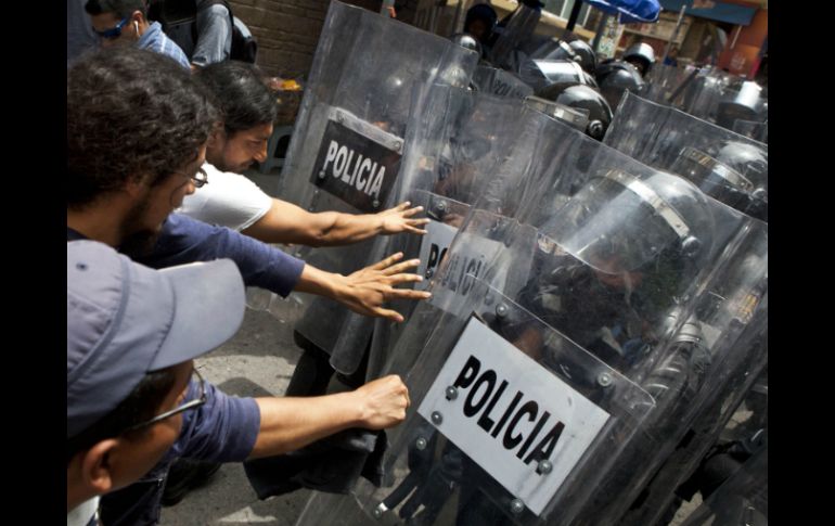 México | Los maestros son disuadidos por elementos antimotines de la Policía Estatal Frenan ingreso de CETEG a Secretaría de Finanzas en Chilpancingo Los maestros son disuadidos por elementos antimotines de la Policía Estatal Por: SUN 4 de junio de 2015 - 13:35 hs En la zona hay una línea de antimotines para impedirles el paso. SUN / C. Rogel CHILPANCINGO, GUERRERO (04/JUN/2015).- Integrantes de la Coordinadora Estatal de Trabajadores de la Educación de Guerrero (CETEG) intentaron ingresar a las oficinas de la Secretaría de Finanzas de esta capital, sin embargo fueron disuadidos por elementos antimotines de la Policía Estatal. Sin embargo, en la calle 16 de septiembre se llevó a cabo una gresca entre policías y maestros disidentes. En el lugar detonaron una bomba de gas lacrimógeno, lo que causó gritos y pánico entre los ciudadanos. Estas oficinas se encuentran a un costado del centro histórico de la ciudad. En las calles hay decenas de ciudadanos que realizan sus compras incluso con bebés y menores de edad en brazos. Tras la gresca, los maestros acusaron que están siendo reprimidos por las fuerzas estatales, pues su jornada solamente es informativa para exigir que no se lleven a cabo las elecciones este 7 de junio hasta que no aparezcan con vida los 43 normalistas de Ayotzinapa, víctimas de desaparición forzada desde septiembre de 2014. En la zona hay una línea de antimotines para impedirles el paso. En tanto, los maestros señalaron que si los policías antimotines se retiran, ellos regresarán a su campamento en el zócalo. Temas Estados Guerrero Manifestaciones en México Elecciones intermedias México 2015 Caso Ayotzinapa Lee También Detienen en Tabasco a menor vinculado con grupo delictivo Hoy No Circula lunes 13 de octubre 2025: Autos que descansan en CDMX y Edomex Revelan llamada al 911 con que se reportó la muerte de Diane Keaton Clara Brugada rinde su Primer Informe de Gobierno Recibe las últimas noticias en tu e-mail Todo lo que necesitas saber para comenzar tu día Registrarse implica aceptar los Términos y Condiciones