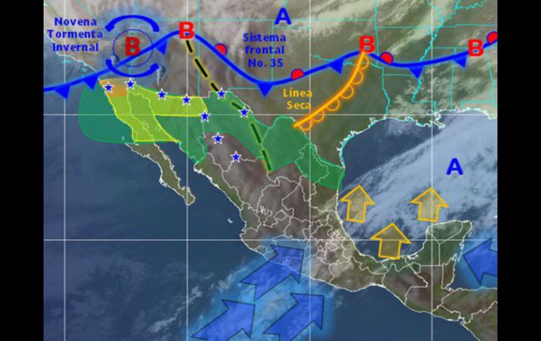 México | El SMN informa que en las próximas horas continúa el potencial de vientos fuertes Frente frío 35 y tormenta invernal causarán nevadas al noroeste del país El SMN informa que en las próximas horas continúa el potencial de vientos fuertes Por: NTX 31 de enero de 2016 - 20:33 hs Advierten que esas condiciones originarán la novena tormenta invernal. TWITTER / @conagua_clima CIUDAD DE MÉXICO (31/ENE/2016).- El Servicio Meteorológico Nacional (SMN) informó que en las próximas horas continuará el potencial de nevadas y vientos fuertes sobre el noroeste del país, debido al ingreso del frente frío 35 y a la novena tormenta invernal. En su aviso más reciente, el organismo de la Comisión Nacional del Agua (Conagua) indicó que ese sistema frontal podría ingresar la noche de este domingo sobre el norte de Baja California y se asociará con un canal de baja presión extendido desde Sonora hasta el Mar de Cortés. Advirtió que esas condiciones originarán la novena tormenta invernal y, en consecuencia, ocasionarán vientos fuertes con rachas superiores a 70 kilómetros por hora en Baja California Sur, con lluvias fuertes, y en Baja California Sur, Sonora y Chihuahua, con precipitaciones pluviales dispersas. El Meteorológico Nacional apuntó que también se mantendrá el potencial para la caída de nieve, ventiscas, aguanieve o lluvia engelante en las sierras de Baja California y Sonora durante esta noche y la madrugada del lunes. Mientras que la línea seca, asociada a un sistema frontal, estará extendida sobre el norte de Coahuila y Nuevo León, lo que generará vientos fuertes con rachas de hasta 60 kilómetros por hora y posible formación de tolvaneras y torbellinos en el norte de Coahuila, Nuevo León y Tamaulipas. Por otra parte, la entrada de humedad del Océano Pacífico, Golfo de México y Mar Caribe provocará caída de agua pluvial aislada en los estados de Tamaulipas, San Luis Potosí, Veracruz, Oaxaca, Chiapas, Puebla, Campeche, Yucatán y Quintana Roo. El organismo señaló que la novena tormenta invernal se localizará este lunes sobre el sur de Estados Unidos y el frente frío 35 se extenderá desde el norte de Chihuahua hasta Baja California Sur y avanzará de manera rápida hacia el sureste. Alertó que ambos sistemas favorecerán el descenso de temperatura y vientos fuertes con rachas superiores a 70 kilómetros por hora en los estados del noroeste y norte del país. También se esperan precipitaciones fuertes en Chihuahua y aisladas en Baja California, Baja California Sur, Sinaloa, Sonora y Durango; y persistirá el pronóstico de caída de nieve, aguanieve, lluvia engelante o ventiscas en zonas montañosas de Baja California, Sonora, Durango y Chihuahua. En tanto que la línea seca afectará al norte de Nuevo León y Tamaulipas, lo que causará vientos fuertes con rachas de hasta 70 kilómetros por hora y posible formación de tolvaneras y torbellinos en el norte de Coahuila, Nuevo León y Tamaulipas. El SMN puntualizó que la entrada de humedad del Océano Pacífico, Golfo de México y Mar Caribe propiciará lluvias aisladas en Tamaulipas, Veracruz, Guerrero, Oaxaca, Chiapas, Yucatán y Quintana Roo. Subrayó que las zonas de tormenta podrían registrar relámpagos, fuertes rachas de viento, posible caída de granizo y probable formación de tolvaneras, turbonadas, torbellinos o tornados. En su pronóstico de temperaturas, el organismo de la Conagua detalló que las zonas montañosas de Baja California, Sonora, Chihuahua y Durango tendrán temperaturas menores a menos cinco grados Celsius con nevadas y heladas. Se prevén valores de menos cinco a cero grados y heladas en las regiones altas de Zacatecas, Coahuila, Aguascalientes y San Luis Potosí, y de cero a cinco grados Celsius en zonas serranas de Nuevo León, Tamaulipas y Estado de México. El SMN agregó que en las últimas 24 horas se sintió la temperatura máxima en Arriaga, Chiapas, con 35 grados, y la mínima en Temósachic, Chihuahua, con menos 9.5 grados Celsius. Temas Nevadas Conagua Estados Frío Clima SMN Lee También Pueblos Mágicos con tradiciones del Día de Muertos más cerca de Jalisco ¿Cómo se comportará el frente frío núm. 7 este jueves? Clima: Frente frío 7 dejará de afectar a México en esta fecha ¿FRÍO en GDL por la noche?, pronóstico del clima para hoy, 16 de octubre Recibe las últimas noticias en tu e-mail Todo lo que necesitas saber para comenzar tu día Registrarse implica aceptar los Términos y Condiciones