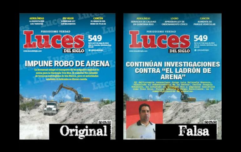 México | Es señalado de cambiar el contenido crítico del semanario por información positiva Gobernador de QR, acusado de clonar revista; juez le exige declarar Es señalado de cambiar el contenido crítico del semanario por información a favor de su administración Por: SUN 24 de septiembre de 2014 - 08:55 hs Imagen difundida en redes sociales sobre la presunta copia fraudulento del semanario ''Luces del Siglo''. TWITTER / @article19mex CIUDAD DE MÉXICO (24/SEP/2014).- El gobernador de Quintana Roo, Roberto Borge Angulo, deberá responder por presuntamente ordenar la clonación del semanario "Luces del Siglo", el cual se distribuye en el destino turístico de Cancún. El mandatario estatal es señalado por ordenar la elaboración y distribución de ejemplares apócrifos de la revista, cambiando el contenido crítico que realiza el semanario hacia su gobierno por información positiva y favorable hacia su administración. Miguel Nahim Nicolás Jiménez, juez Cuarto de Distrito, estableció un plazo para que Borge rinda declaraciones y exprese si son ciertos o no los actos que se le atribuyen. De acuerdo con el semanario "Luces del Siglo", La organización Artículo 19 se han documentado más de 35 falsificaciones de la revista de forma impresa y virtual. El juez otorgó la suspensión provisional de amparo a la directora general del semanario, Norma Madero, contra actos del gobernador Roberto Borge, y estableció una audiencia incidental para las once horas con cinco minutos del 25 de septiembre de 2014. Temas Periodismo Portadas de revistas o periódicos Estados Quintana Roo Lee También China amenaza con "pelear hasta el final" si EU mantiene los nuevos aranceles Estos son los estados en alerta por posible propagación de dengue Despliegan operativo tras bloqueos en Chiapas Así se prevé que avance el desarrollo de "Sonia" en México Recibe las últimas noticias en tu e-mail Todo lo que necesitas saber para comenzar tu día Registrarse implica aceptar los Términos y Condiciones