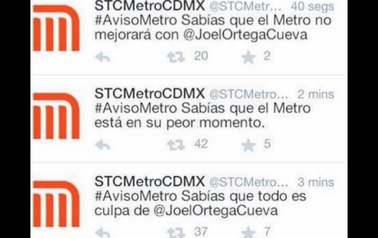 México | Se publicaron tuits criticando el servicio del Sistema de Transporte Colectivo Metro Hackean cuenta de Twitter del Metro del DF Se publicaron tuits criticando el servicio del Sistema de Transporte Colectivo Metro Por: EL INFORMADOR 10 de septiembre de 2014 - 20:50 hs Imagen de algunos de los tuits que se publicaron en la cuenta del Metro cuando fue hackeada. ESPECIAL @STCMetroCDMX. / GUADALAJARA, JALISCO (10/SEP/2014).- El Sistema de Transporte Colectivo Metro de la Ciudad de México informó que su cuenta en twitter fue hackeada. Esta tarde el STC señaló que su cuenta de Twitter @STCMetroCDMX fue intervenida por un hacker, quien publicó los siguientes tuits: "#AvisoMetro Sabías que el CM de esta cuenta no quiere contestar nada" "#AvisoMetro Sabías que el Metro está en su peor momento" "#AvisoMetro Sabías que para festejos de aniversario se gastó 1,000,000 y de refacciones nada" "#AvisoMetro Derivado de la apertura que tenemos ahora el TW será privado, para que no nos de molestias" "#AvisoMetro Sabías que el Metro no mejorará con @JoelOrtegaCueva" "#AvisoMetro Sabías que todo es culpa de @JoelOrtegaCueva" "#AvisoMetro El tren está muy mal y si no me creen pregunten a los trabajadores" Horas antes, la cuenta del Metro hacía la invitación a seguirlos en su nueva cuenta de Twitter @MetroCDMX y posteriormente a la publicación de dichos tuits se posteó el siguiente mensaje: "Desafortunadamente nuestra cuenta ha sido hackeada les pedimos hacer caso omiso de los mensajes. Gracias". Actualmente en redes sociales existe confusión, ya que tanto la cuenta que fue hackeada (@STCMetroCDMX) como la cuenta en la que se pidió hacer caso omiso de los mensajes (@MetroCDMX) se encuentran protegidas y con estatus de cuenta privada. SABER MÁS @JoelOrtegaCueva es la cuenta oficial de Joel Ortega Cuevas, director general del Sistema de Transporte Colectivo Metro. Todo este lío en redes sucede días después de que la empresa Systra entregará su análisis con respecto a la construcción de la línea 12 del Metro, arrojando que desde la planeación existieron grandes problemas en la construcción. Aunado a esto, la Contraloría del Distrito Federal dio a conocer el resultado de la investigación emprendida por las autoridades en torno a la construcción de la línea y sancionó a 33 funcionarios con suspensiones de puestos públicos de entre 10 y 20 años; 15 de ellos pudiendo recibir sanciones económicas. Temas Estados Ciudad de México Twitter Metro de la Ciudad de México Recibe las últimas noticias en tu e-mail Todo lo que necesitas saber para comenzar tu día Registrarse implica aceptar los Términos y Condiciones