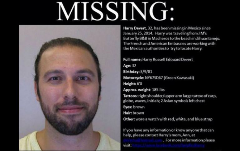 México | Harry Devert hizo contacto por última vez con su familia desde Michoacán Hallan restos humanos en Guerrero, podría ser un estadounidense Harry Devert hizo contacto por última vez con su familia cuando se encontraba en Michoacán Por: SUN 11 de julio de 2014 - 18:19 hs ACAPULCO, GUERRERO (11/JUL/2014).- La Procuraduría General de Justicia del Estado (PGJE) informó que ayer fueron encontrados los restos de un hombre en un camino de terracería que conduce a la comunidad de Playa La Majahua, municipio de La Unión, en la zona limítrofe con Michoacán, que por las características podría tratarse de Harry Devert, un trotamundos reportado como desaparecido. La dependencia precisó que el cuerpo estaba en estado de descomposición, al lado de una bolsa que contenía 10 envoltorios de lo que al parecer son narcóticos y una motocicleta. La PGJE fue alertada del hallazgo por una llamada anónima en el municipio de la Costa Grande del estado; en el sitio fue hallada una motocicleta Kawasaki color verde, igual a la del viajero que pretendía llegar a Brasil para el Mundial de Futbol. Harry está en calidad de desaparecido desde el 25 de enero; se sabe que el último contacto que tuvo con su familia en Nueva York fue cuando se encontraba en Michoacán. La zona fue resguardada por personal del operativo "Sellamiento Guerrero-Michoacán", integrado por fuerzas estatales, militares, marinos, policías federales y ministeriales. Peritos del Servicio Médico Forense (Semefo) trasladaron el cuerpo a una funeraria que adecuaron para realizarle la necropsia correspondiente. Según las autoridades, los restos encontrados serán analizados genéticamente para realizar la "confronta" del perfil genético de Harry y corroborar si efectivamente era su cuerpo. Las muestras biológicas recabadas por la PGJE servirán para la elaboración del perfil genético del cuerpo y cotejarlo con el de familiares de Harry. La PGJE informó que la Fiscalía Regional de la Costa Grande proseguirá con el apoyo del Ministerio Público investigador de La Unión, para el perfeccionamiento de la indagatoria ministerial a efecto de recabar todas las evidencias, testimoniales y declaraciones que permitan ubicar y detener a los probables responsables de los hechos. Temas Muertes Estados Guerrero Desapariciones y denuncias Recibe las últimas noticias en tu e-mail Todo lo que necesitas saber para comenzar tu día Registrarse implica aceptar los Términos y Condiciones