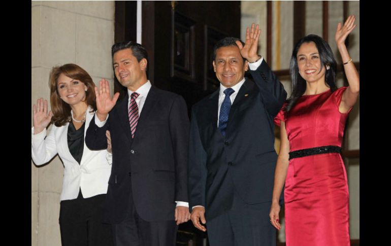México | El presidente electo se reúne con mandatario peruano en última escala de gira por AL Humala recibe con honores a Peña Nieto El presidente electo se reúne con mandatario peruano en la última escala de su gira por América Latina Por: EL INFORMADOR 23 de septiembre de 2012 - 18:49 hs Peña Nieto y Humala con sus respectivas esposas en el Palacio de Gobierno de Lima. EFE / LIMA, PERÚ (23/SEP/2012).- El presidente electo de México, Enrique Peña Nieto, arribó al Palacio de Gobierno de Lima, Perú, donde fue recibido con honores correspondientes a un presidente en funciones, por el mandatario peruano Ollanta Humala. Se espera que examinarán temas de comercio, seguridad y aspectos de naturaleza multilateral. Peña Nieto recibió el saludo protocolar de la Guardia de Honor "Mariscal Domingo Nieto", que le dio la bienvenida, y luego recibió el saludo de Humala y su esposa, Nadine Heredia. Peña Nieto llegó a las 18:35 hora local (23:35 GMT), acompañado por su esposa Angélica Rivera. Concluido el encuentro privado, ambos presidentes darán un mensaje antes los medios de comunicación. Posteriormente el presidente de Perú ofrecerá una cena a Peña Nieto, su esposa y su comitiva. La gira continental de Peña Nieto concluirá el lunes en Perú y ha servido para acercar a México con América Latina. Perú y México mantienen temas y objetivos comunes en el campo del comercio, las inversiones, combate al narcotráfico, crimen organizado y esfuerzos de tipo multilateral. "Para Perú es muy importante que culmine aquí su gira. Que haya venido a esta región y que se fortalezcan los esfuerzos bilaterales para incrementar el comercio y las inversiones", dijo a Notimex el ministro peruano de Relaciones Exteriores, Rafael Roncagliolo. Las dos naciones han trabajado en el pasado en los intercambios de todo tipo y esfuerzos multilaterales. "Estamos juntos en la Alianza del Pacífico, participamos juntos en el APEC y en la Comunidad de Estados Latinoamericanos y del Caribe (CELAC)", dijo. Acompañan además al priista Luis Videgaray, coordinador general para transición gubernamental; Emilio Lozoya, responsable de asuntos internacionales del equipo de transición, y David López, titular de comunicación social de dicho equipo. Con información de El Universal y NTX Temas Política Enrique Peña Nieto Perú Recibe las últimas noticias en tu e-mail Todo lo que necesitas saber para comenzar tu día Registrarse implica aceptar los Términos y Condiciones