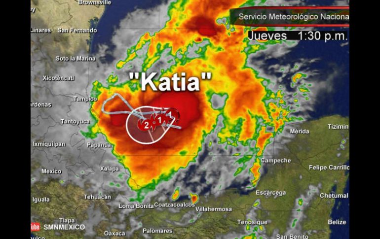 XALAPA, VERACRUZ (07/SEP/2017).- El huracán ''Katia'' se mantiene estacionado, su centro fue localizado a las 10:00 horas de este jueves a 315 kilómetros al noreste del puerto de Veracruz y a 285 kilómetros al este de la Laguna de Tamiahua, con vientos máximos sostenidos de 130 kilómetros por hora.En un comunicado, en su página de Facebook, la Coordinación de Protección Civil del estado, indicó que se prevé que el fenómeno alcance la categoría dos este viernes, con vientos máximos sostenidos de 165 kilómetros por hora y rachas de 205 kilómetros.La dependencia indicó que es probable se aproxime a categoría tres antes de impactar costas veracruzanas en un punto entre Cabo Rojo y Palma Sola hacia la medianoche del mismo viernes.Los efectos del huracán en Veracruz son lluvias torrenciales, especialmente en la zona norte, que podría ocasionar desbordamientos de ríos y arroyos, asimismo deslaves, derrumbes y deslizamientos.El viento del norte y noroeste se irá intensificando y se tornará de tipo ciclónico conforme se aproxime a tierra, con velocidades fuertes de viento, que también puede presentarse en zonas de la montaña.Además, habrá oleaje elevado en las proximidades de la costa, con alturas máximas en las inmediaciones del meteoro de cinco a seis metros.El Sistema de Alerta Temprana para Ciclones Tropicales se mantiene en fase de acercamiento, amarilla para el norte-centro de Veracruz y verde para el sur, se estima sea elevada a Naranja por la tarde.