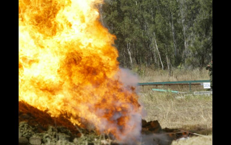México | Destacan que destruyeron mariguana, metanfetaminas y heroína Incineran 8.6 toneladas de diversas drogas en Sonora Destacan que destruyeron mariguana, metanfetaminas y heroína Por: NTX 4 de febrero de 2016 - 21:59 hs Las drogas estaban relacionados con 49 averiguaciones previas, iniciadas por delitos contra la salud. EL INFORMADOR / ARCHIVO HERMOSILLO, SONORA (04/FEB/2016).- La Procuraduría General de la República (PGR), en coordinación con la Secretaría de la Defensa Nacional ( Sedena), incineró más de 8.6 toneladas de mariguana, metanfetaminas y heroína en esta ciudad. La delegación de la PGR en la entidad indicó, a través de un comunicado de prensa, que a través de la incineración se destruyeron ocho mil 815 kilogramos de mariguana y cinco kilos de semilla del enervante. Asimismo, abundó, se destruyeron 136 kilogramos de metanfetaminas y 516 gramos de heroína. Destacó que las drogas estaban relacionados con 49 averiguaciones previas, iniciadas por delitos contra la salud y asegurados en distintos operativos realizados en todo el estado de Sonora. Mencionó que la Subprocuraduría de Control Regional, Procedimientos Penales y Amparo (SCRPPA) supervisó la destrucción de los enervantes, conforme a lo dispuesto en el Calendario Nacional de Incineración de Narcóticos. Representantes del Órgano Interno de Control de la institución, dieron fe de la destrucción, puntualizó. Temas PGR Estados Sonora Drogas Mariguana Lee También Lemus responde a Riva Palacio Entra en vigor prohibición a Vector, CIBanco e Intercam Palabras de Trump, “groseras e ignorantes con Colombia”: Gustavo Petro Asaltan a alcalde electo de Veracruz; le quitan camioneta, pero sale ileso Recibe las últimas noticias en tu e-mail Todo lo que necesitas saber para comenzar tu día Registrarse implica aceptar los Términos y Condiciones