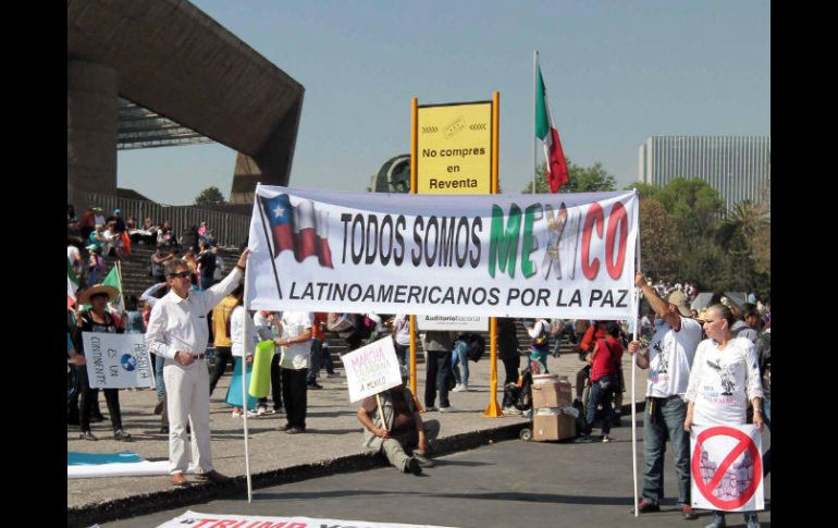CIUDAD DE MÉXICO (12/FEB/2017).- El contingente de la marcha “Vibra México” inició su recorrido sobre el Paseo de la Reforma, a la altura del Auditorio Nacional.Después de cantar el Himno Nacional, los manifestantes se alistaron para comenzar la marcha portando pancartas contra el presidente de Estados Unidos, Donald Trump, entre ellas: “Trump, respeto a México” y “Fuera Trump”.Los inconformes además gritan consignas como “México unido jamás será vencido” y “México, Dignidad”.Los asistentes portan en su mayoría atuendos blancos y otros portan playeras de la Selección mexicana, además portan banderas de México.