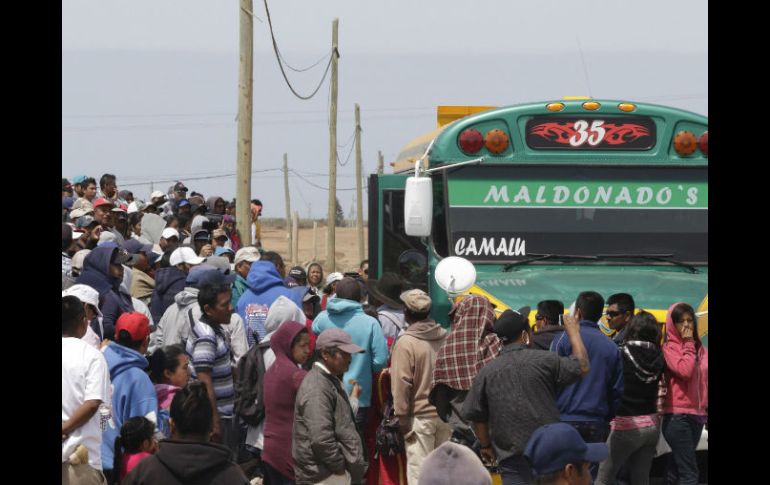 México | Los agricultores de San Quintín sostienen un encuentro con autoridades en Ensenada Inicia reunión de jornaleros y la Segob Los agricultores de San Quintín sostienen un encuentro con autoridades en Ensenada Por: SUN 13 de mayo de 2015 - 17:19 hs Cuatro autobuses salieron de San Quintin este miércoles con destino a Ensenada, donde se lleva a cabo la reunión. SUN / L. Cortés ENSENADA, BAJA CALIFORNIA (13/MAY/2015).- Jornaleros de San Quintín encabezados por sus cinco voceros llegaron a esta ciudad para sostener un encuentro con autoridades locales y federales, entre ellos el titular de la unidad de Gobierno de la Secretaría de Gobernación, David Garay. Después de viajar en cuatro autobuses de San Quintín a Ensenada, trayecto en el que se les sumó otro camión, una comisión de los trabajadores del campo entró a la sede de la Administración Portuaria Integral (API), para realizar el encuentro. Los trabajadores pretenden sacar adelante sus demandas, entre las que se encuentran la libertad de cuatro de los detenidos el sábado pasado durante el enfrentamiento en la colonia Lomas de San Ramón, de San Quintín. Principalmente discutirán su propuesta de fijar un salario mínimo de 200 pesos para los jornaleros, además de pagos extras por cubeta de fresa, entre otros productos. Temas Segob Estados Baja California Manifestaciones en México Lee También Dólar amanece encarecido este 10 de octubre Pronóstico de lluvia hoy, 10 de octubre, a esta HORA en CDMX "La Mañanera" de Sheinbaum de hoy viernes 10 de octubre de 2025 La distopía de Clara Brugada Recibe las últimas noticias en tu e-mail Todo lo que necesitas saber para comenzar tu día Registrarse implica aceptar los Términos y Condiciones