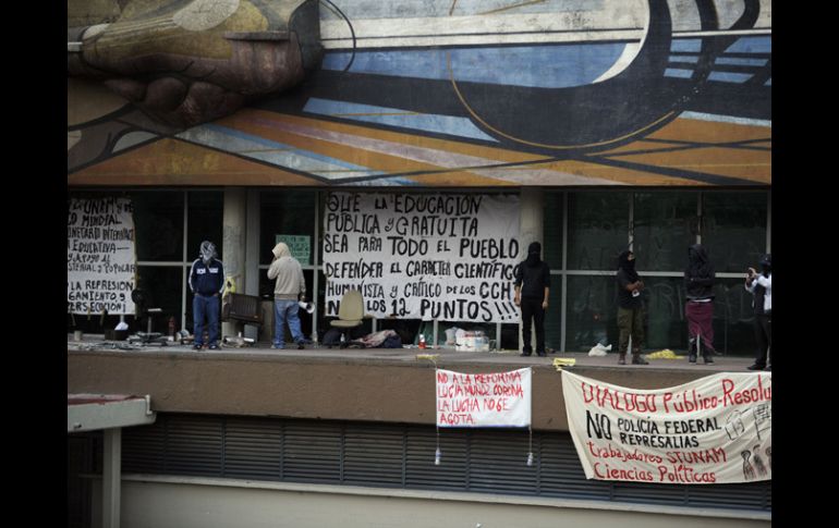 México | Los inconformes se apoderaron de esas instalaciones desde el viernes pasado Instalan casas de campaña en Rectoría de la UNAM Los encapuchados exigen dialogar con el rector, José Narro, para que atienda sus demandas de reinstalar a cinco expulsados del CCH Naucalpan Por: NTX 25 de abril de 2013 - 09:04 hs La explanada de la Torre de Rectoría de la UNAM amanece este jueves con cinco pequeñas tiendas de campaña. AFP / CIUDAD DE MÉXICO (25/ABR/2013).- La explanada de la Torre de Rectoría de la UNAM amaneció este jueves con cinco pequeñas tiendas de campaña, en las que pernoctaron jóvenes que apoyan al grupo de encapuchados, quienes se apoderaron de esas instalaciones desde el viernes pasado. Se espera que durante este jueves se coloquen más carpas, luego de que ayer acordaron instalar un plantón por tiempo indefinido, ante la posibilidad de que la fuerza pública ingrese a la Universidad Nacional Autónoma de México (UNAM) para desalojar el inmueble. Los encapuchados exigen dialogar con el rector de la máxima casa de estudios del país, José Narro, para que atienda sus demandas de reinstalar a cinco expulsados del Colegio de Ciencias y Humanidades (CCH) Naucalpan, que participaron en actos de violencia el 1 y 5 de febrero en ese centro escolar. También piden el desistimiento de las demandas penales presentadas por la UNAM contra quienes tomaron la Torre de Rectoría. Como parte de sus acciones de apoyo a los manifestantes en Rectoría, se prevé una marcha por el Circuito Universitario, así como una jornada informativa en facultades e institutos universitarios sobre su movimiento. Temas UNAM Estados Distrito Federal Lee También "Raymond" baja su potencia, pero tocará tierra en horas En Hidalgo, caminos destrozados complican rescates y ayuda Así se celebrará en Guanajuato el Día de Muertos Lluvias dejan 37 muertos en cuatro estados de México Recibe las últimas noticias en tu e-mail Todo lo que necesitas saber para comenzar tu día Registrarse implica aceptar los Términos y Condiciones
