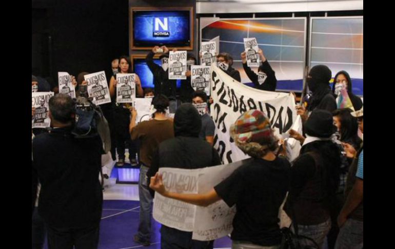 México | Los jóvenes lograron burlar la seguridad para ingresar a uno de los set de grabación Irrumpen manifestantes en televisora en BC Los jóvenes lograron burlar la seguridad para ingresar a uno de los set de grabación Por: SUN 2 de diciembre de 2014 - 07:21 hs Las autoridades policíacas no reportan daños y sin ningún detenido. TWITTER / @Desinformemonos CIUDAD DE MÉXICO (02/DIC/2014).- Un grupo de manifestantes, irrumpieron ayer lunes por la noche las instalaciones de Televisa en Mexicali, capital de Baja California. Según información policial los jóvenes lograron burlar la seguridad e ingresar a uno de los set de grabación. En redes sociales se puede leer que el motivo de la movilización y "toma pacífica de la televisora" es por que "estamos hasta la madre de la teledictadura, y de los medios narcoterroristas. El caso Ayotzinapa no es un caso aislado el gobierno siempre ha reprimido con muerte y violencia, dicen. A la televisora, localizada sobre la avenida Héctor Terán, lograron ingresar aproximadamente 50 jóvenes; algunos con paliacates a media cara que cubrían su rostro; y llevaban pancartas en donde se leía "exigimos la destitución de Peña Nieto; Vivos se los llevaron vivos los queremos", refiriéndose a los 43 estudiantes desaparecidos. Las autoridades policíacas no reportan daños, y los jóvenes abandonaron las instalaciones sin ser detenidos por ninguna de las corporaciones policiales, que arribaron al lugar ante la manifestación dentro de la televisora. Temas Televisa Estados Guerrero Baja California Manifestaciones en México Desapariciones y denuncias Lee También Esta es la verdadera identidad del "Juan Gabriel" captado en París t.A.T.u anuncia concierto en México: precio de boletos y cuándo salen a la venta ¿Será obligatorio presentar la CURP biométrica para trámites escolares? Día de Muertos 2025: ¿Por qué será más caro el Pan de Muerto este año? Recibe las últimas noticias en tu e-mail Todo lo que necesitas saber para comenzar tu día Registrarse implica aceptar los Términos y Condiciones